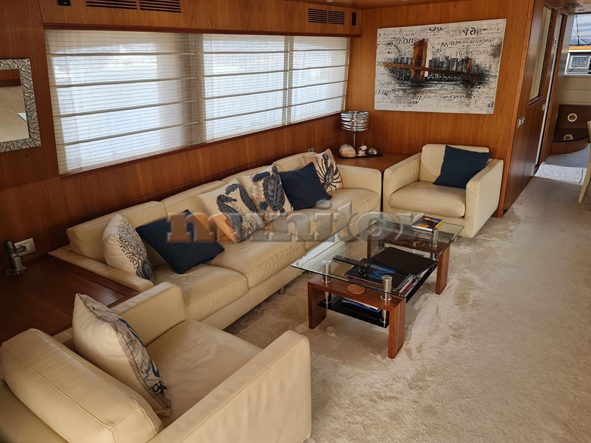 Salon, Kueche, Esszimmer, Bugkabine, Seitenkabine, Eigenerkabine mit baderaum, Crewkabine, 2x baderaum, 2x toilette, Cockpit, Flybridge, Garage