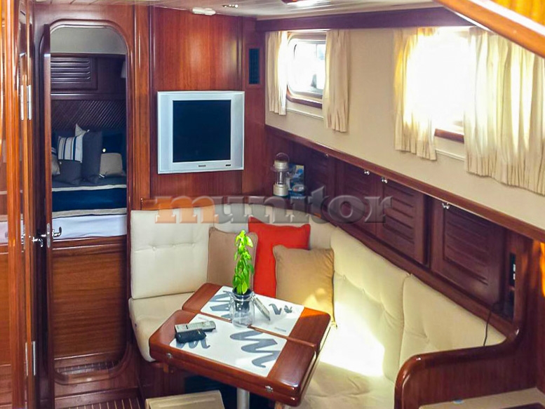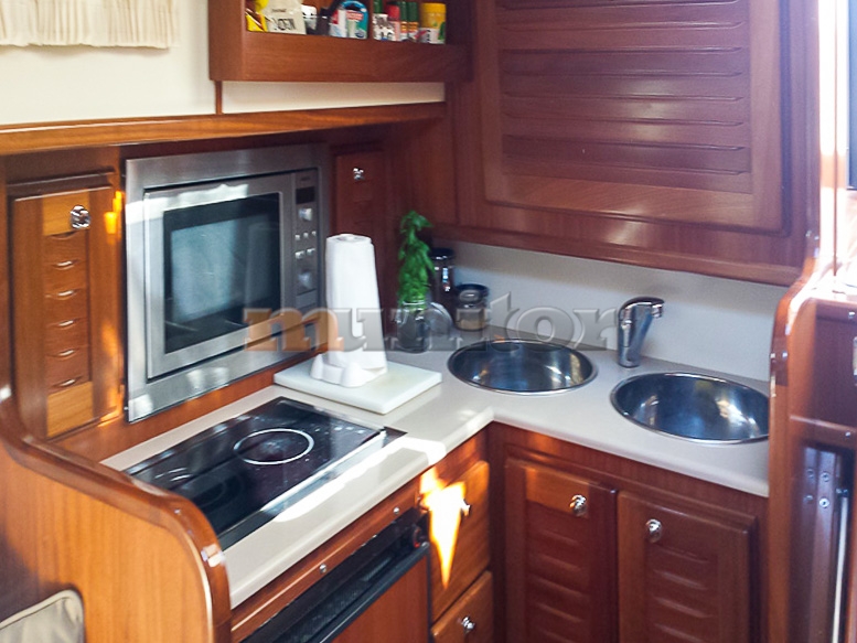 Audio System, Autopilot, Badeplattform, Baderleiter, Batterieladegerät, Bugstrahlruder, Davits, Echolot, El. ankerwinde, El. toilet, Fender, Gangway hydraulisch, Generator, GPS Kartenplotter, Heck in teakholz, Heckdusche, Heizung, Herd, Klimaanlage, Kompass, Kühlschrank, LCD TV, Microwelle, Radar, Sonnenliege, Teakholz im Cockpit, UKW - Funk, Warmwasser, Wasch maschine, Yacht controller
