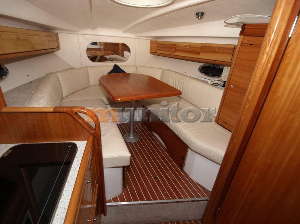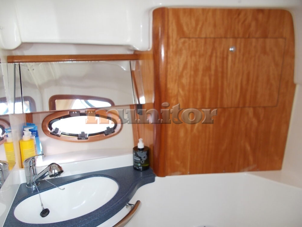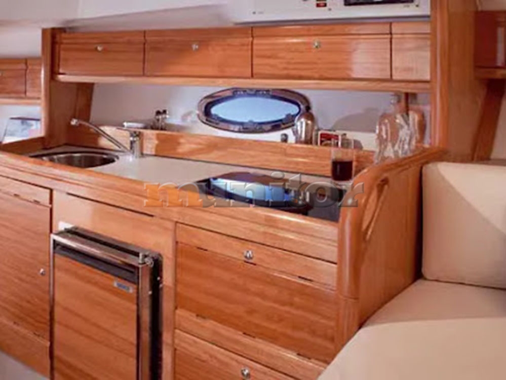 VHF, Echo sounder, Cockpit shower, El.anchor windlass, Hot water system, GPS Plotter, Bimini top, Battery charger, Bow thruster, Fenders, Compass, Bathing platform, Swimming ladder, Air condition, Heating, Solar cells, LED TV, Service battery, Engine battery, Stern teak