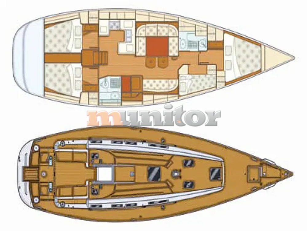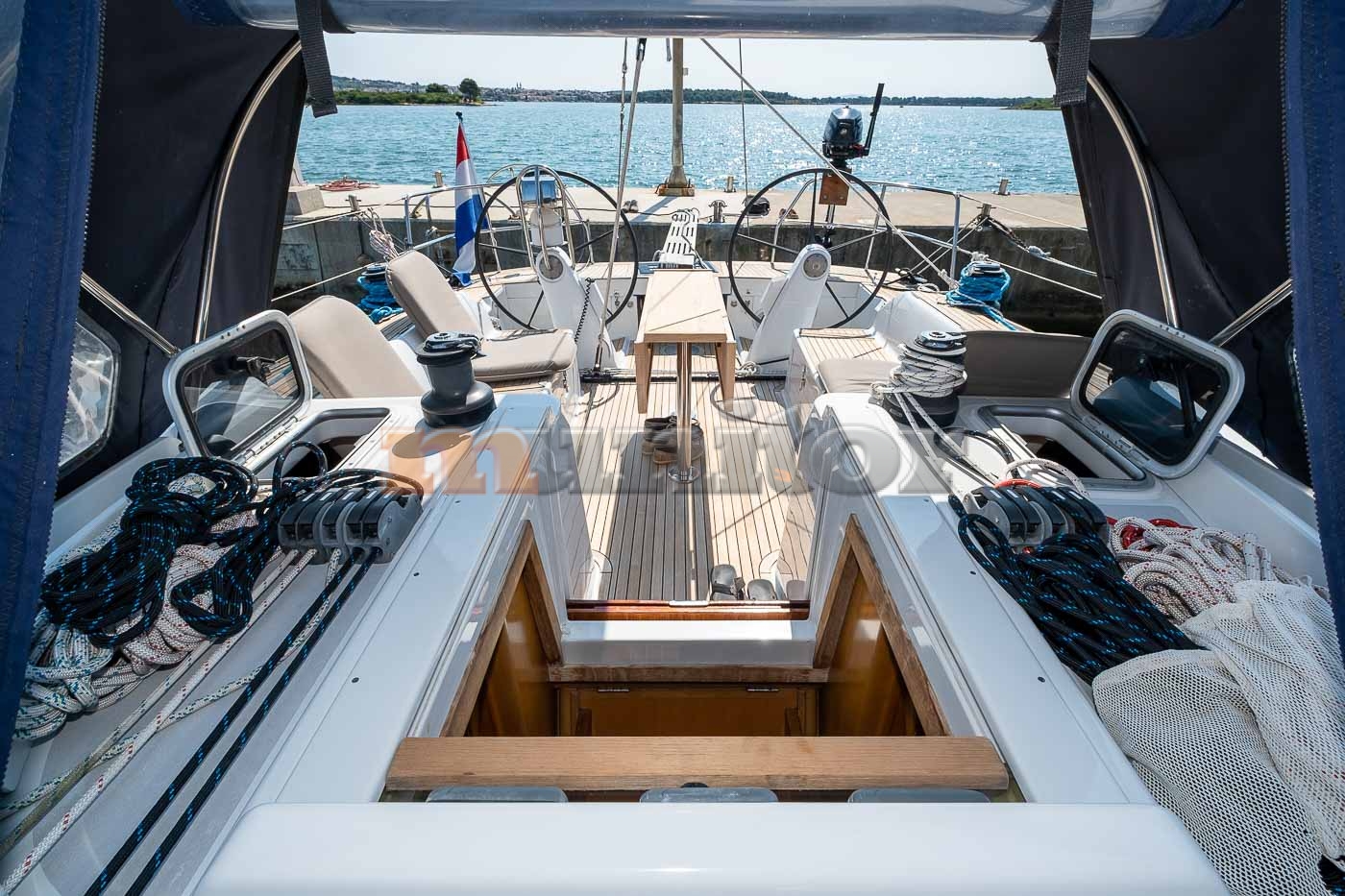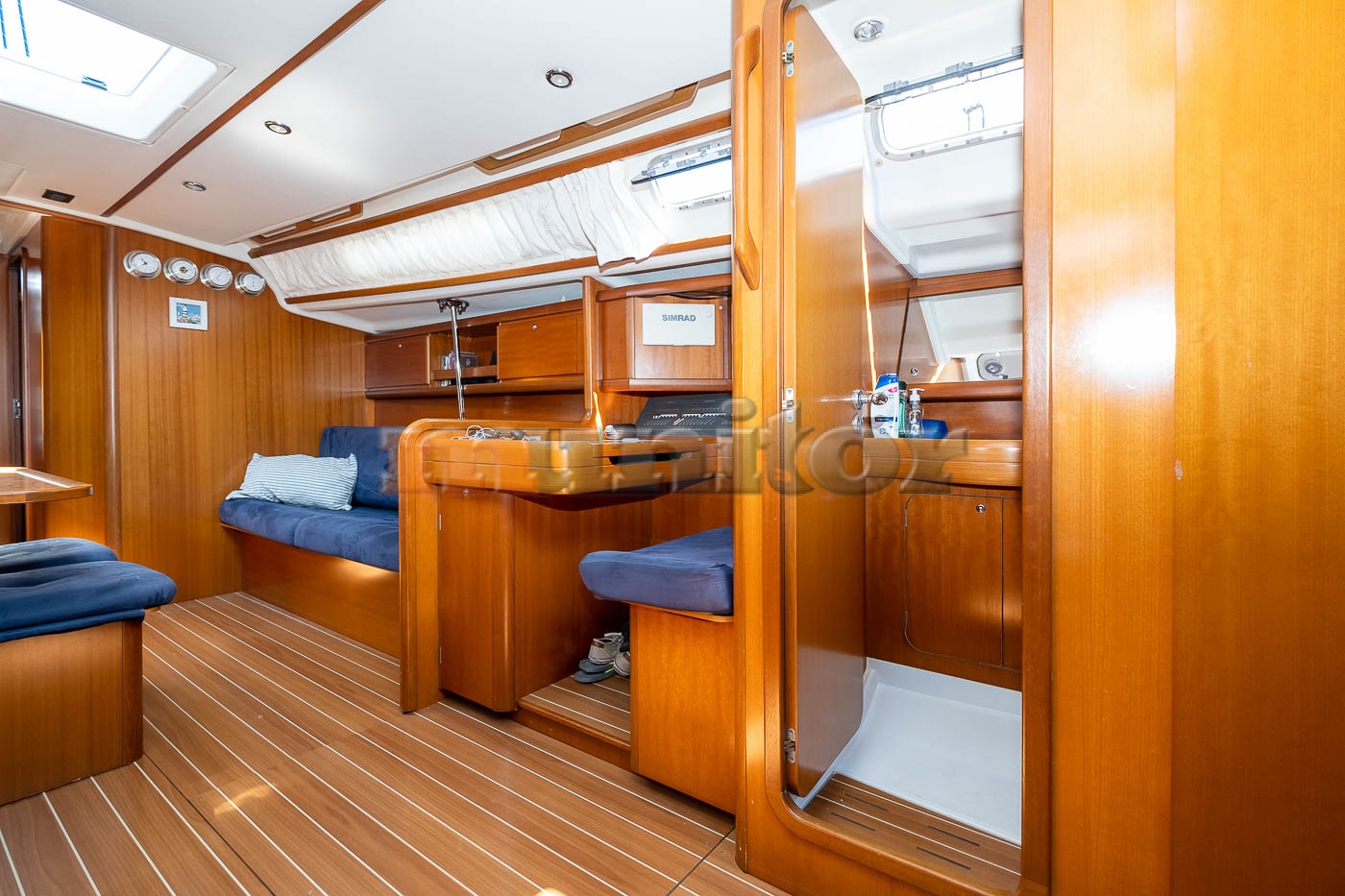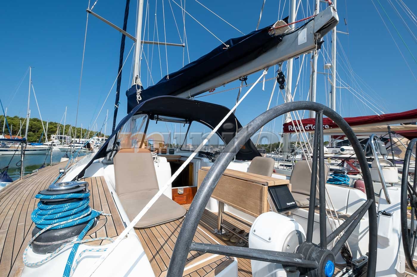 VHF, Echo sounder, Heating - WEBASTO, Autopilot, Radar, Cockpit shower, El.anchor windlass, Hot water system, GPS Plotter, Wind indicator, Sprayhood, Bimini top, Battery charger, Bow thruster, LCD TV, Audio System, Fenders, Compass, Bathing platform, Swimming ladder, Generator - 3,8 kW, Service battery, Engine battery, Teak in cockpit, Stern teak, Oven
