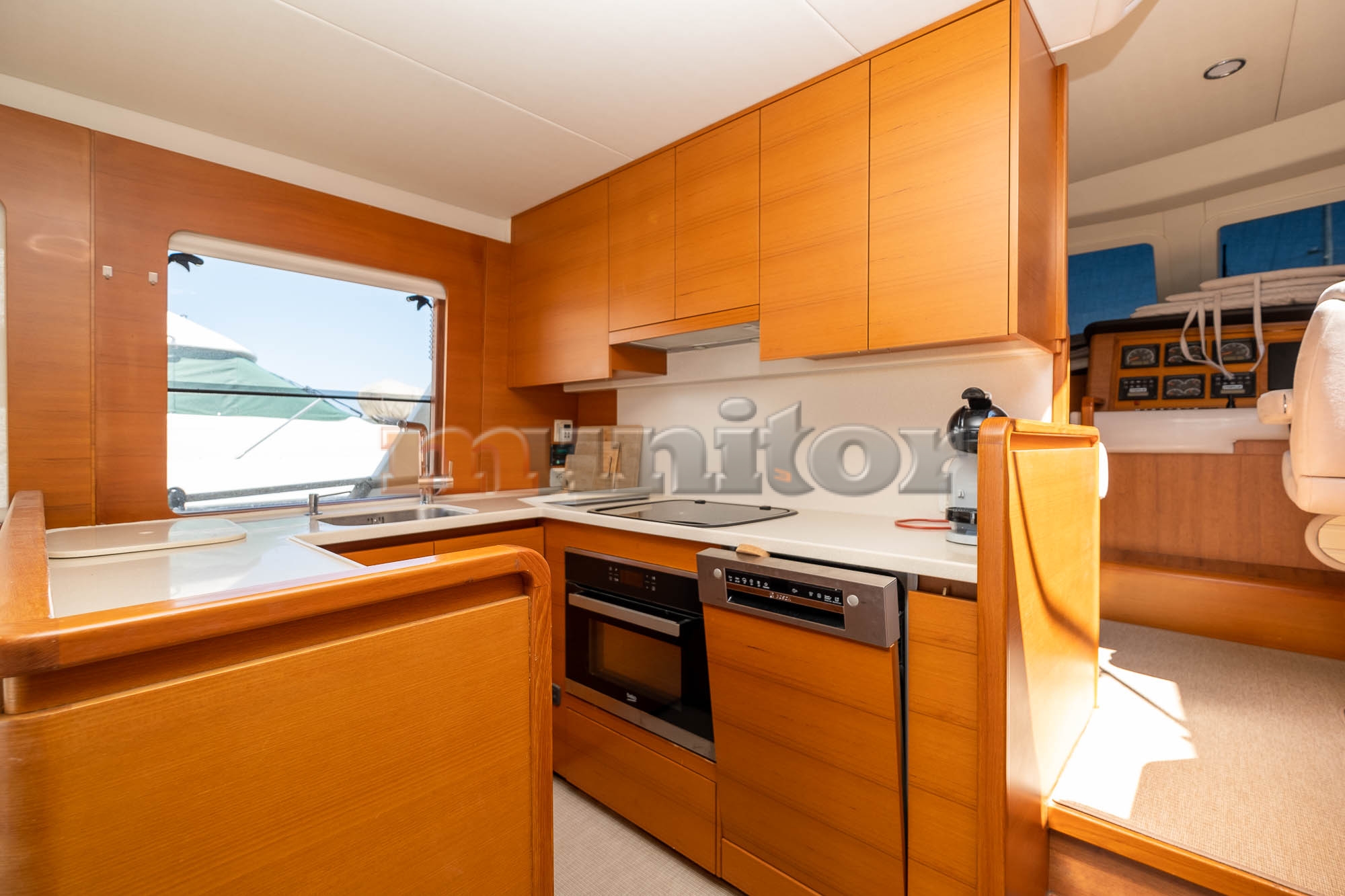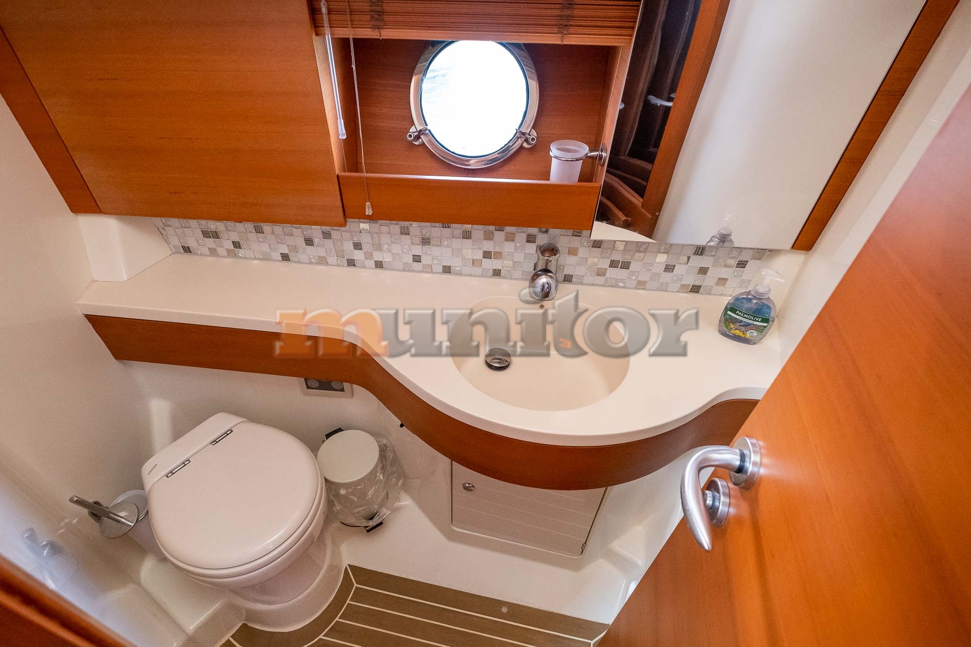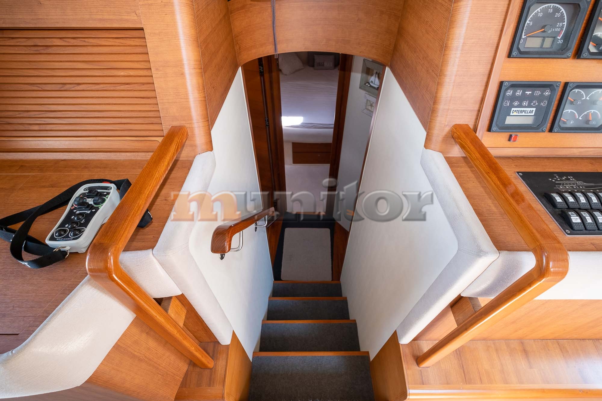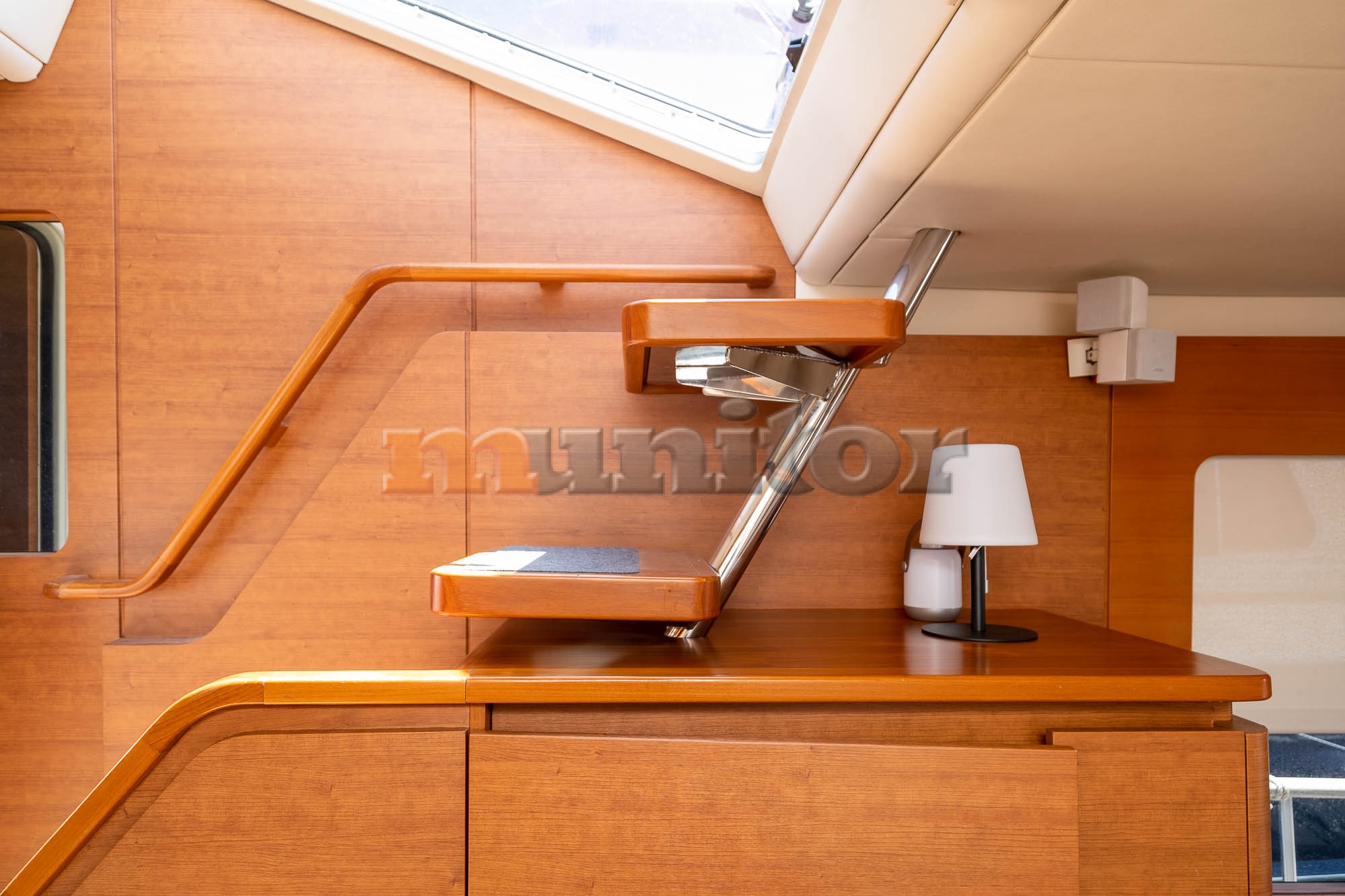 VHF, Echo sounder, Air condition, Heating, Autopilot, Radar, Cockpit shower, El.anchor windlass, Hot water system, Grey water tank, GPS Plotter, Battery charger, FLYBRIDGE Bimini, Deck cushions, Hydraulic gangway, Bow thruster, Audio System, Fenders, Microwave, Compass, Swimming ladder, Side exit door, Generator, Hydraulic bathing platform, El. toilet, Service battery, Engine battery, Teak in cockpit, Stern teak