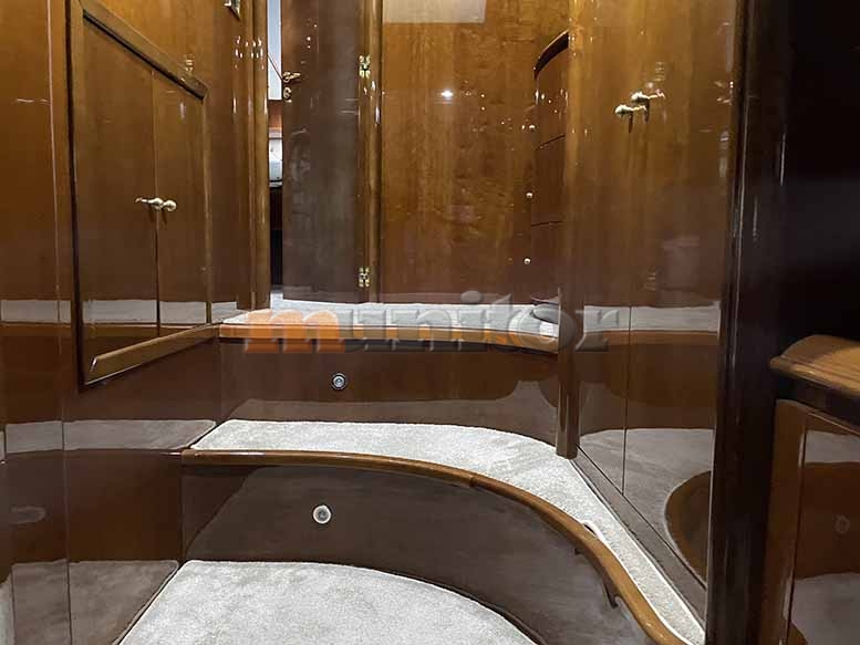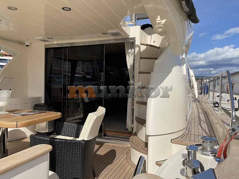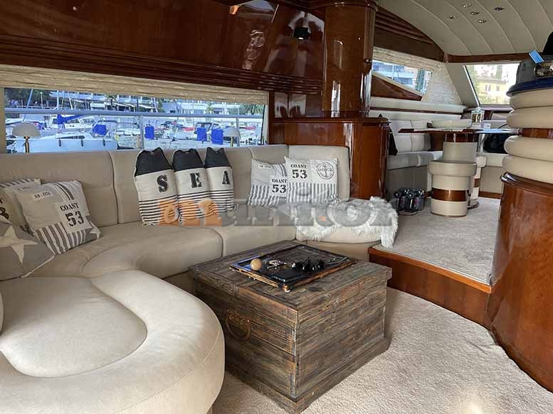 Air condition, Autopilot, Bathing platform, Battery charger, Bow thruster, Cockpit shower, Compass, Deck cushions, Echo sounder, El. toilet, El.anchor windlass, Fenders, FLYBRIDGE Bimini, Generator, GPS Plotter, Grey water tank, Heating, Hot water system, Hydraulic gangway, LCD TV, Microwave, Radar, SAT anten, Sofas in leather, Stern thruster, Swimming ladder, VHF, Washing/ drying mashine