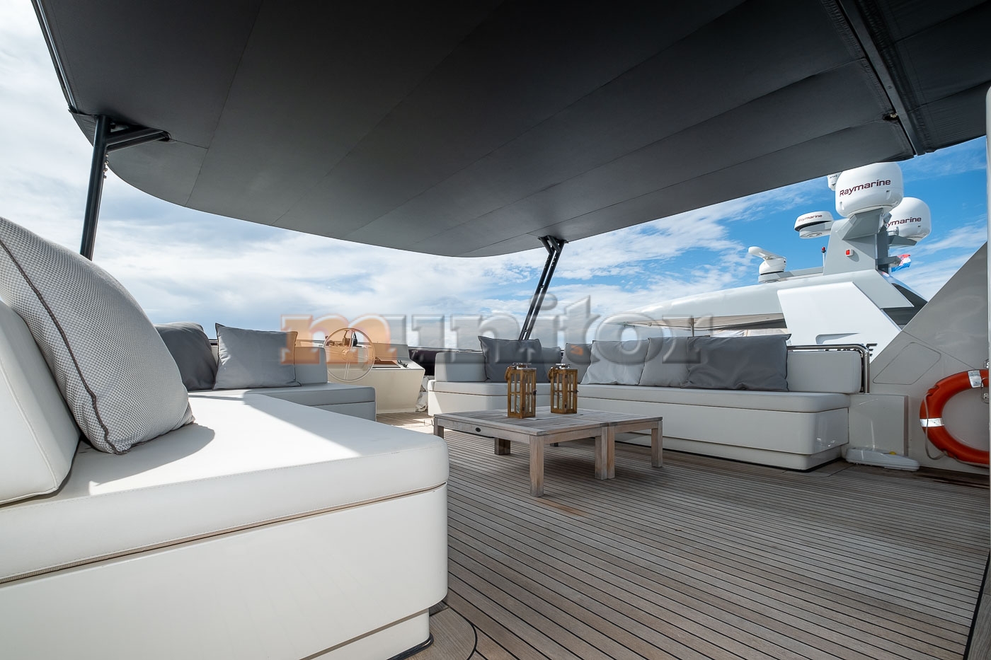 VHF, Echo sounder, Fly Crane, Air condition, Heating, Autopilot - SIMRAD, Radar, Cockpit shower, El.anchor windlass, Hot water system, Grey water tank, GPS Plotter - SIMRAD, Battery charger, FLYBRIDGE Bimini, Deck cushions, Life raft, Hydraulic gangway, Bow thruster, LCD TV, SAT anten, Audio System, Fenders, Bathing platform, Swimming ladder, Side exit door, Water maker, Generator - 22 kW, Washing mashine, Washing/ drying mashine, Hard Top, Fishfinder, El. toilet, Flaybridge cover, Hydraulic stabilizers, Service battery, Engine battery, Extra fridge, Teak in cockpit, Stern teak, Oven