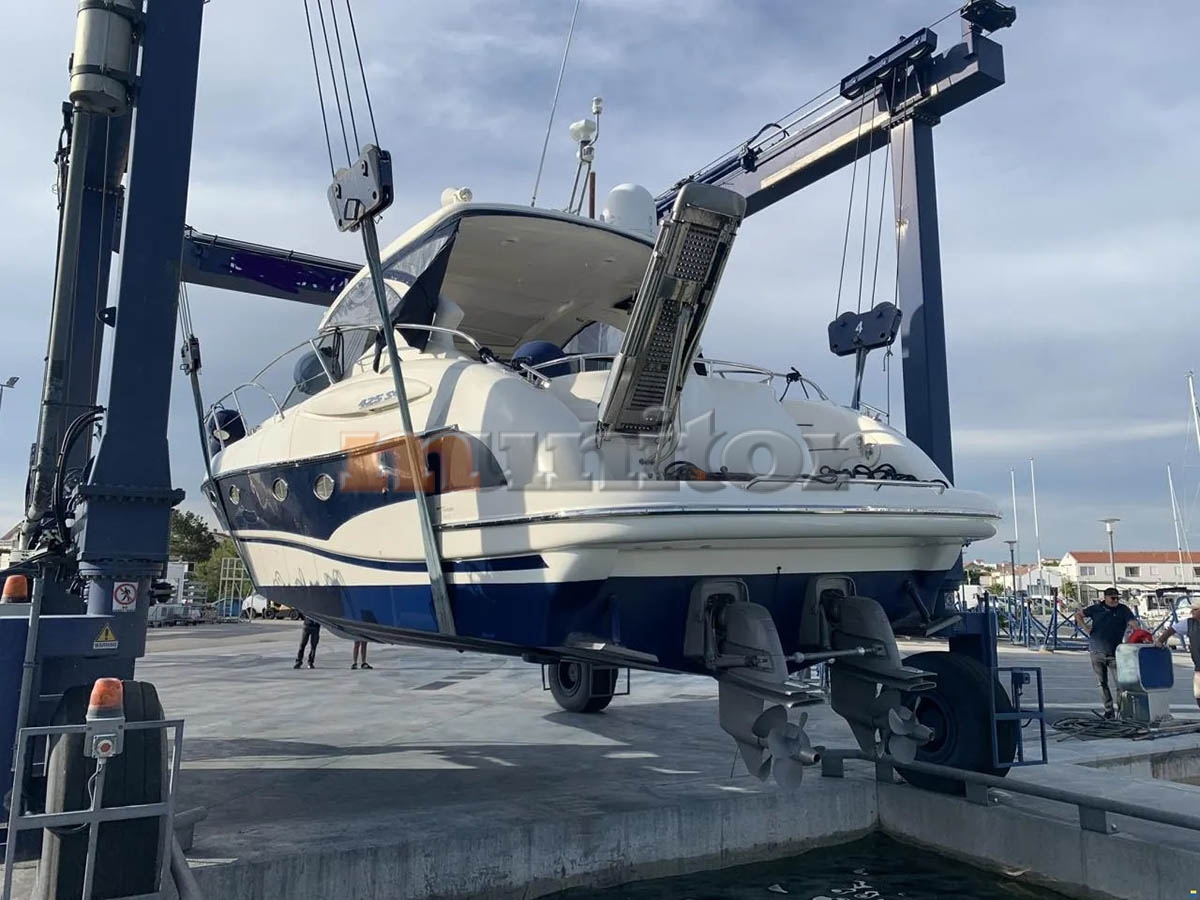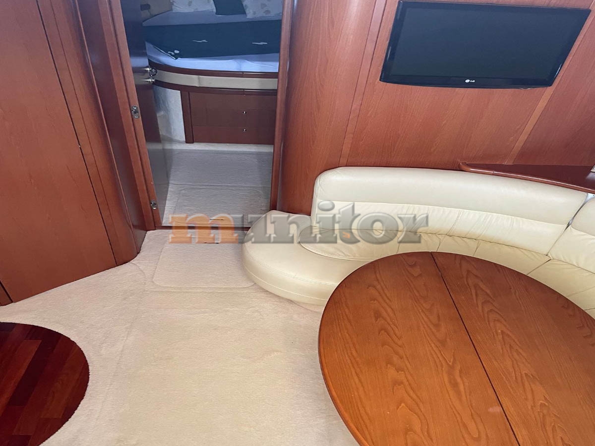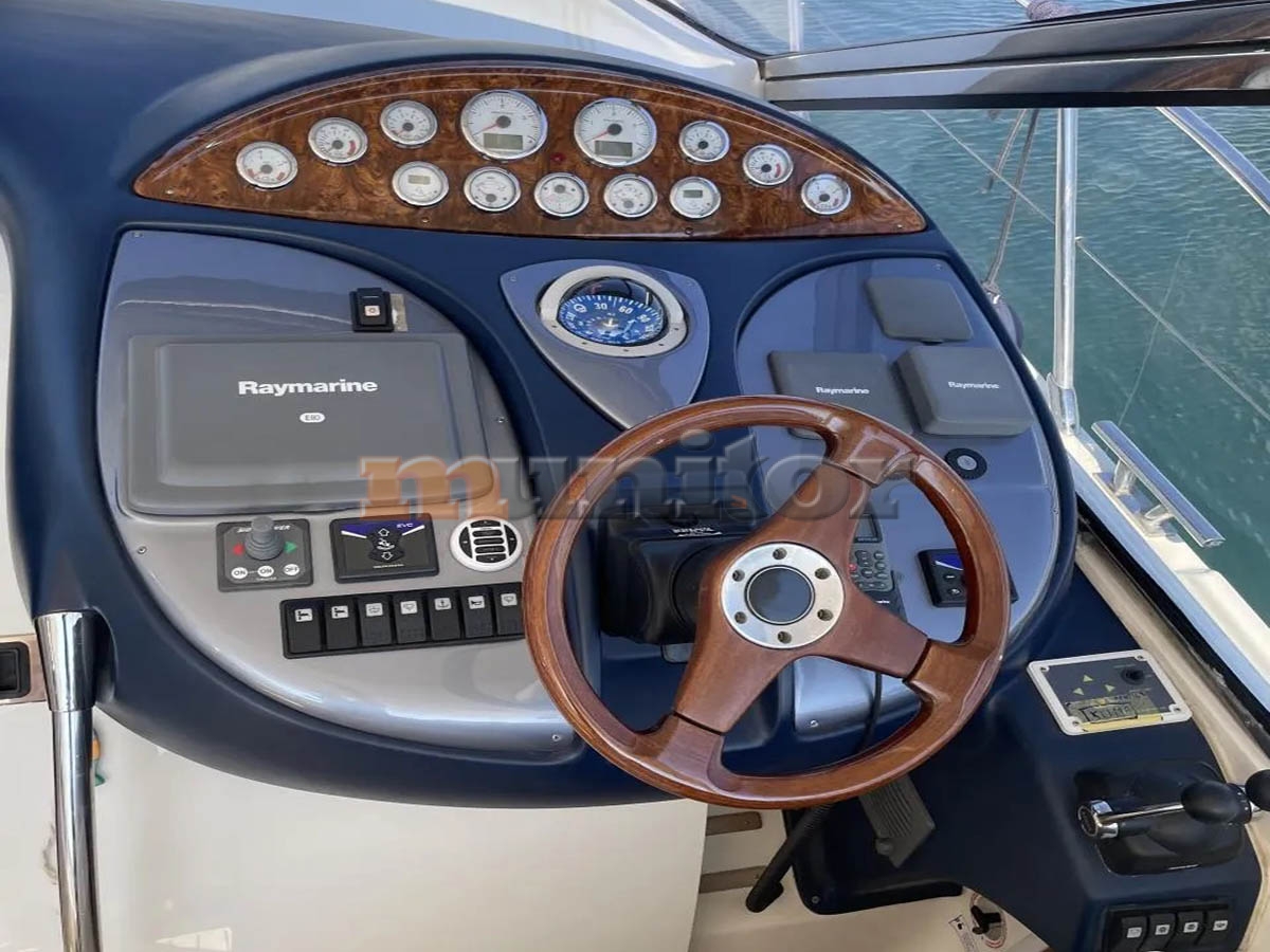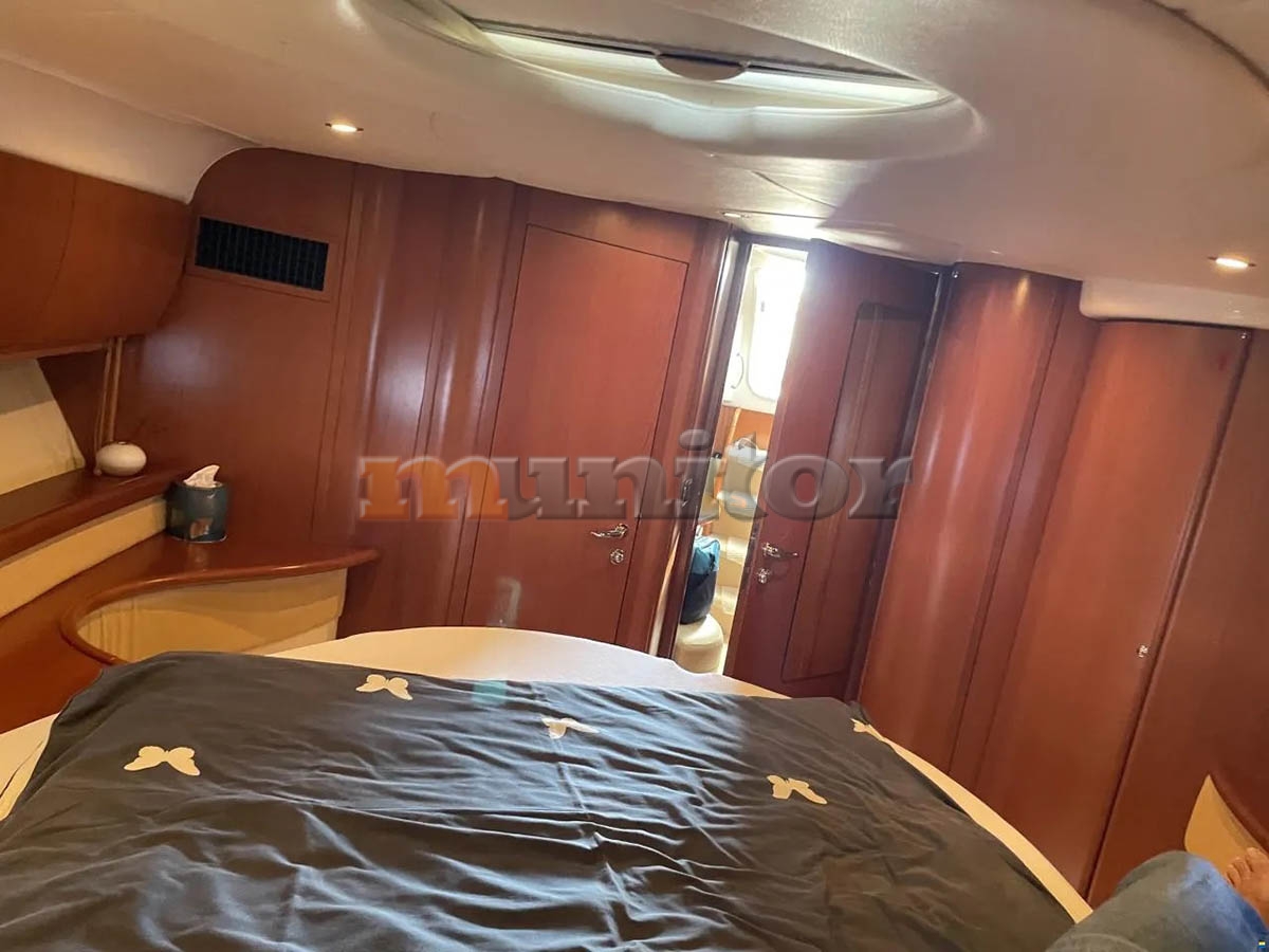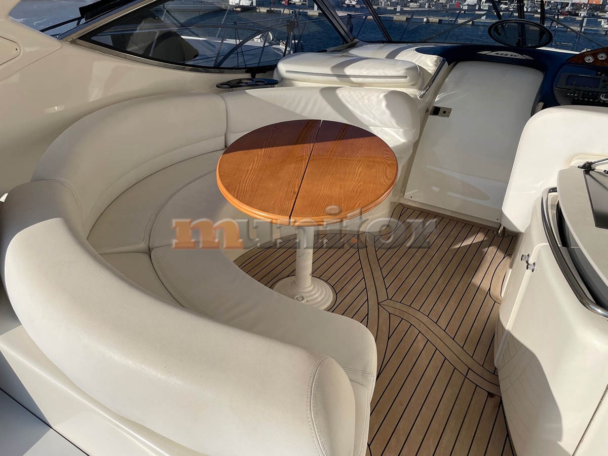 VHF, Echo sounder, Air condition, Heating, Autopilot, Cockpit shower, El.anchor windlass, Hot water system, Grey water tank, GPS Plotter, Battery charger, Deck cushions, Hydraulic gangway, Bow thruster, LCD TV, Audio System, Fenders, Microwave, Bathing platform, Swimming ladder, Sofas in leather, Generator, El. throttle control, Hard Top, El. toilet, Teak in cockpit, Stern teak
