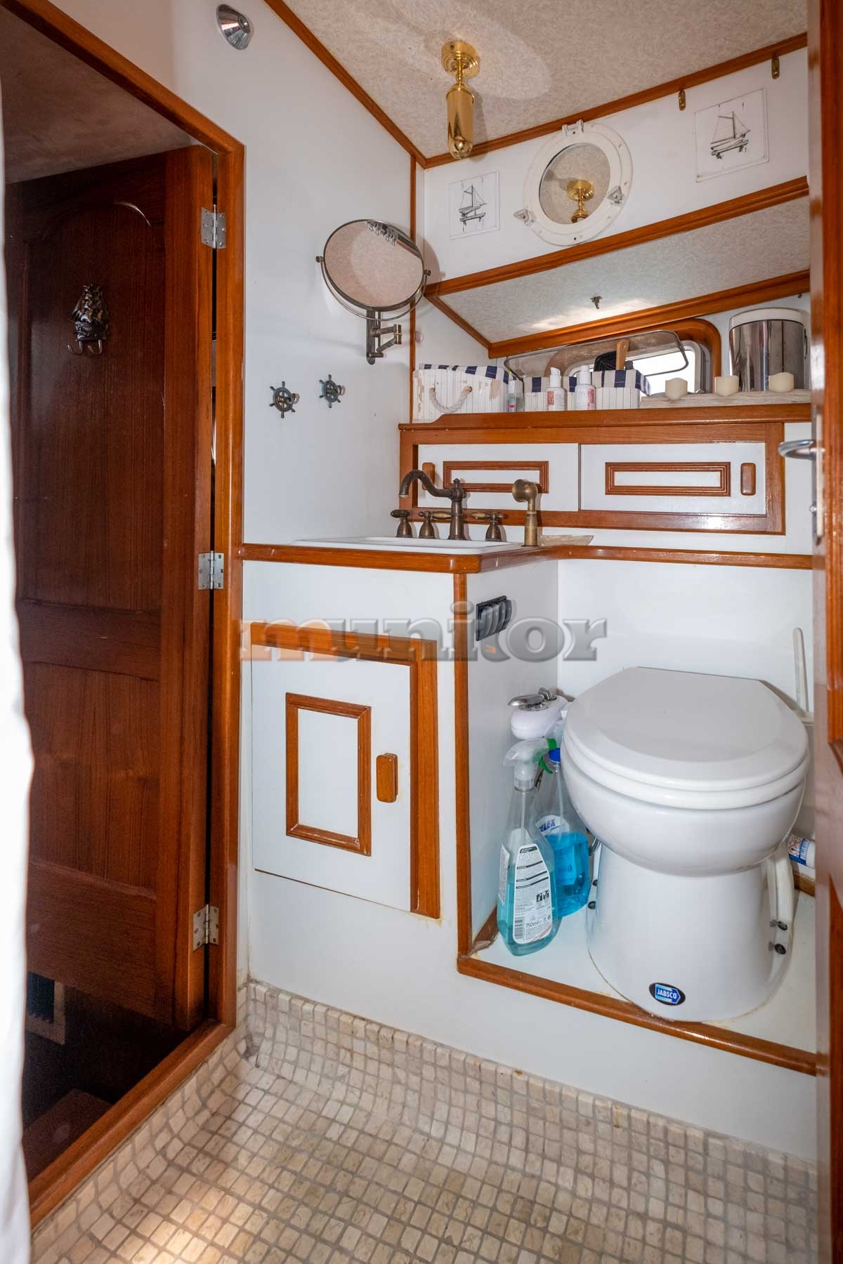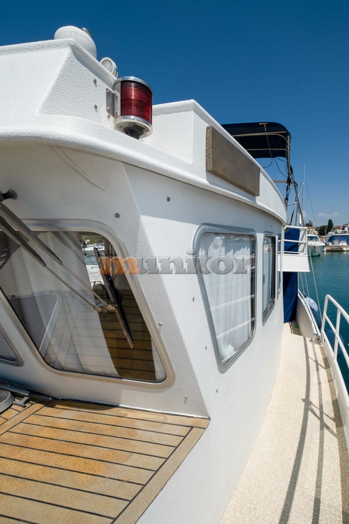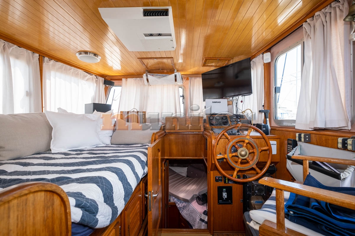 Echo sounder, Heating, Autopilot, Radar, Cockpit shower, El.anchor windlass, Hot water system, GPS Plotter, Battery charger, FLYBRIDGE Bimini, Bow thruster, LCD TV, Fenders, Compass, Bathing platform, Swimming ladder, Side exit door, Generator, Service battery, Engine battery