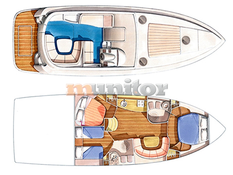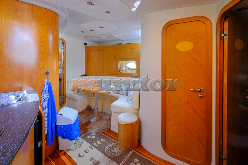 VHF, Echo sounder, Air condition, Heating, Cockpit shower, El.anchor windlass, Hot water system, Grey water tank, GPS Plotter, Bimini top, Battery charger, Deck cushions, Hydraulic gangway, Bow thruster, Fenders, Microwave, Compass, Bathing platform, Swimming ladder, El. toilet, Generator
