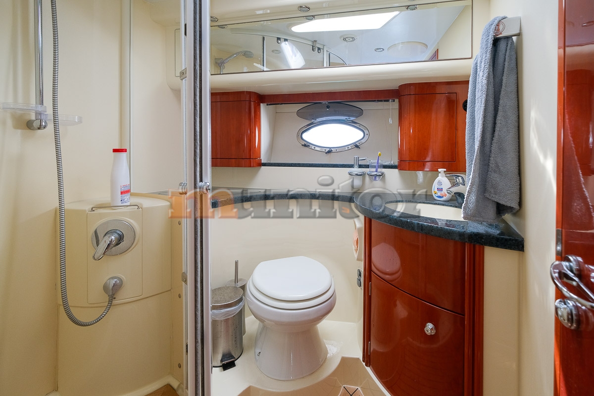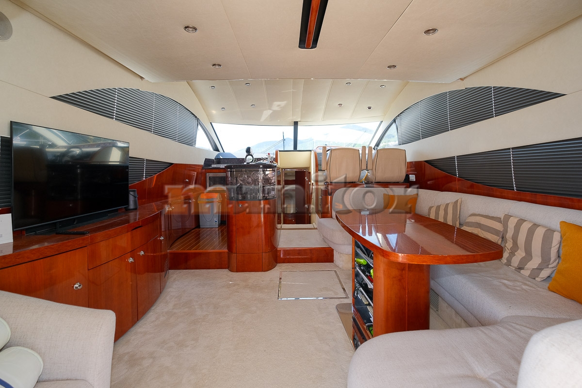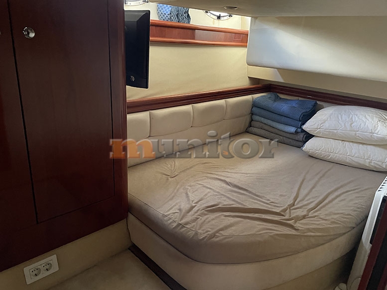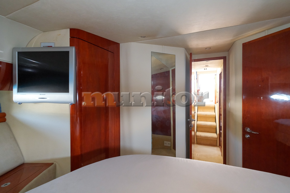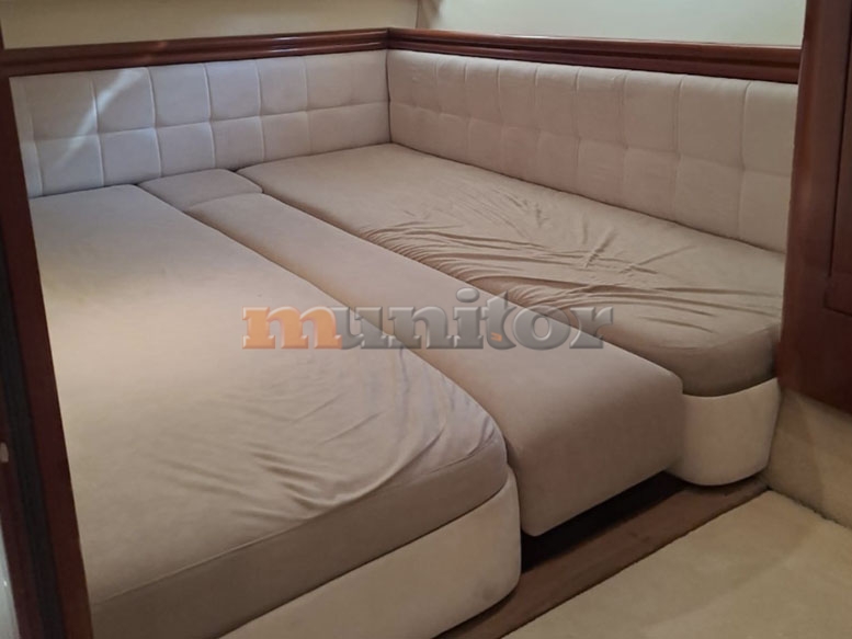 VHF, Echo sounder, Air condition, Heating, Autopilot, Radar, Cockpit shower, El.anchor windlass, Hot water system, Grey water tank, GPS Plotter - RAYMARINE, Battery charger, FLYBRIDGE Bimini, Deck cushions, Hydraulic gangway, Bow thruster, LCD TV, Audio System, Dinghy - WILLIAMS 285, Microwave, Bathing platform, Swimming ladder, Sofas in leather, Water maker, Generator - 17 kW, Washing mashine, El. throttle control, Flaybridge cover