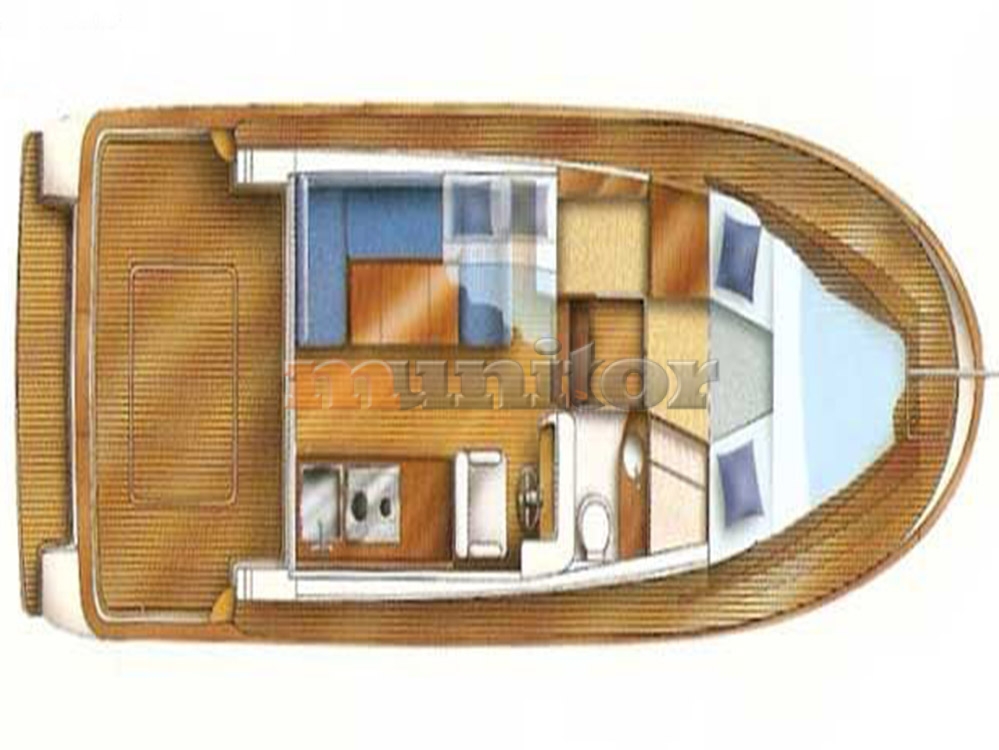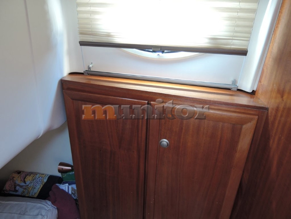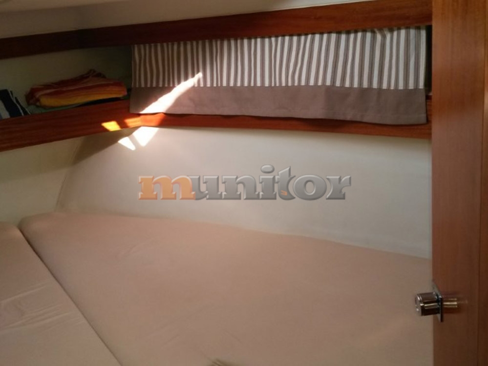 VHF, Echo sounder, Heating, Autopilot, Radar, Cockpit shower, El.anchor windlass, Hot water system, GPS Plotter, Battery charger, Deck cushions, Bow thruster, Fenders, Bathing platform, Swimming ladder, Hard Top, El. toilet, Service battery, Engine battery, Teak in cockpit, Stern teak