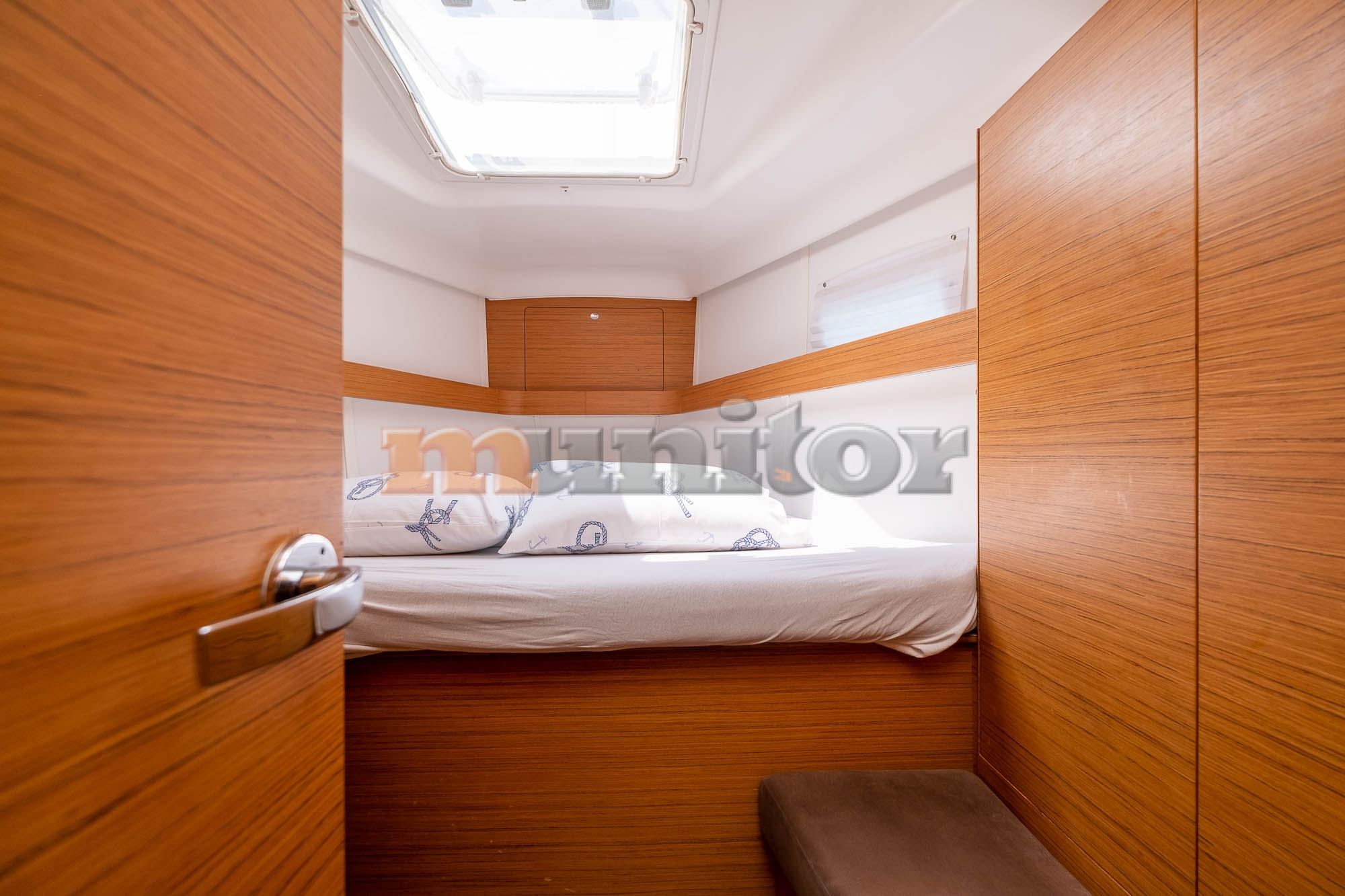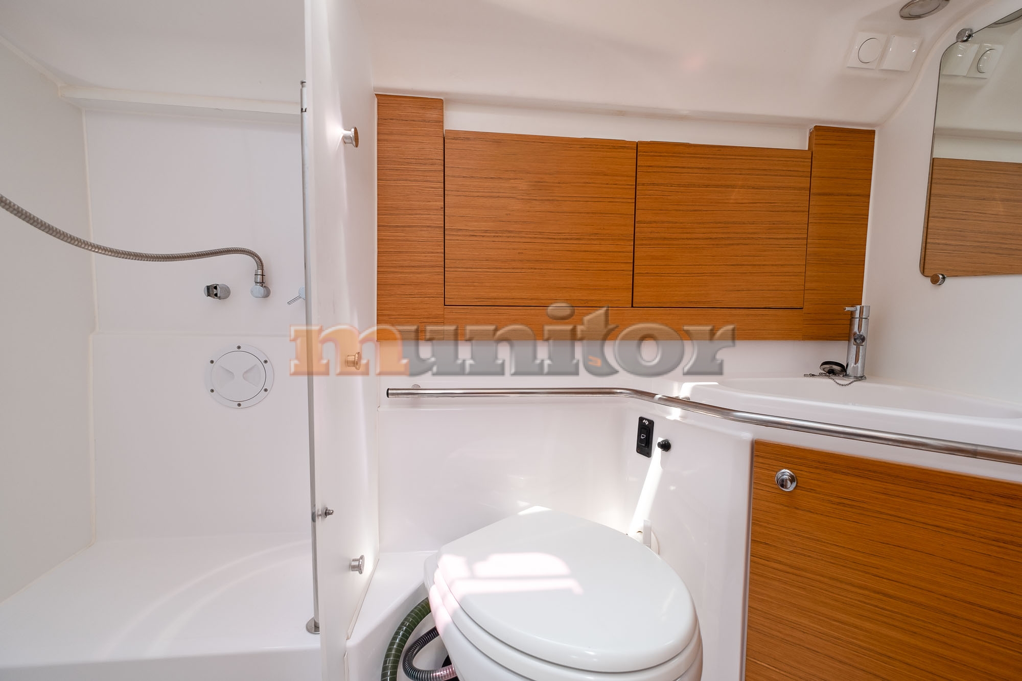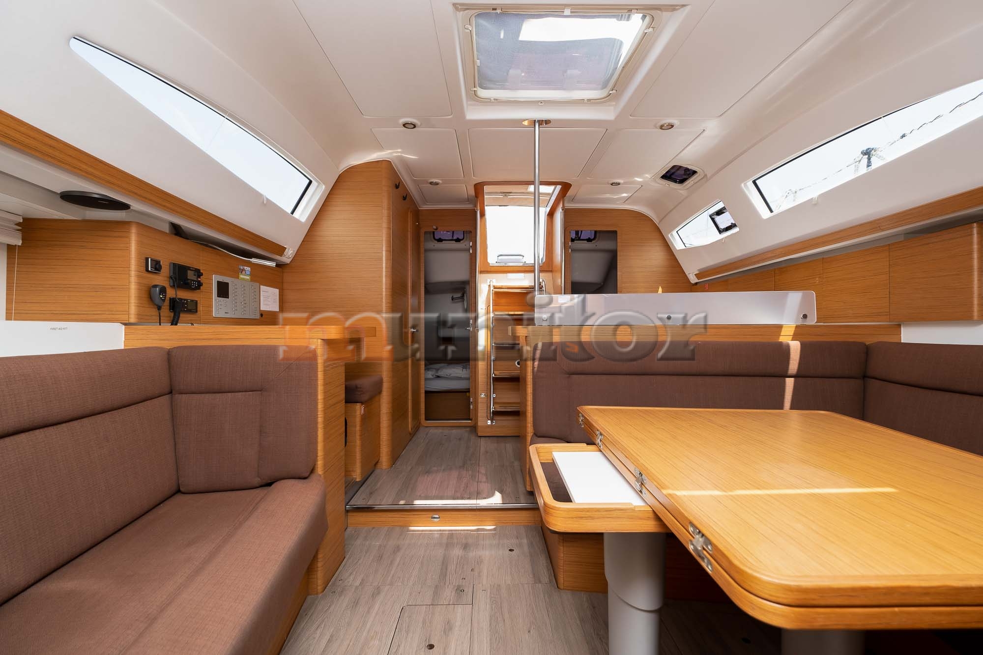 Autopilot, Bathing platform, Battery charger, Bimini top, Bow thruster, Cockpit shower, Compass, Echo sounder, El.anchor windlass, Fenders, GPS Plotter, Heating, Hot water system, Sprayhood, Stern teak, Swimming ladder, Teak in cockpit, VHF, Wind indicator