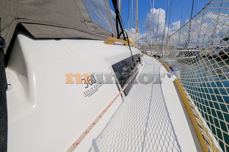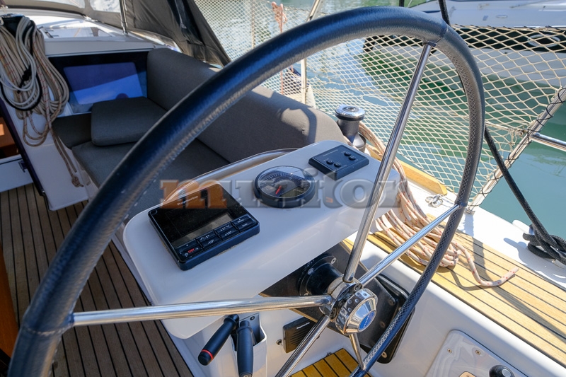 Audio System, Autopilot, Bathing platform, Battery charger, Bimini top, Cockpit shower, Compass, Echo sounder, El.anchor windlass, Fenders, Grey water tank, Heating, Hot water system, Oven, Refrigerator, Solar cells, Sprayhood, Stove, Teak in cockpit, VHF, Wind indicator
