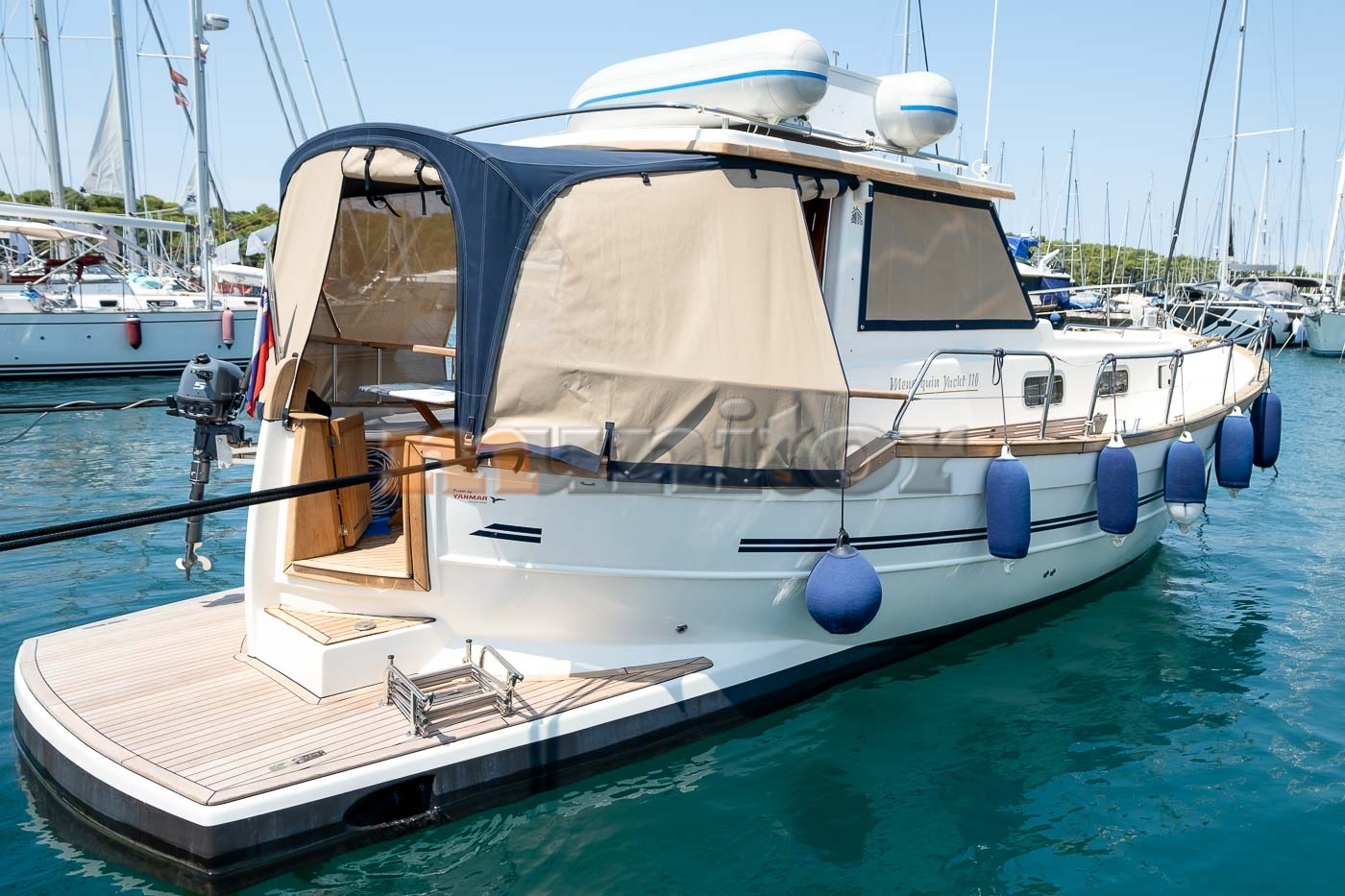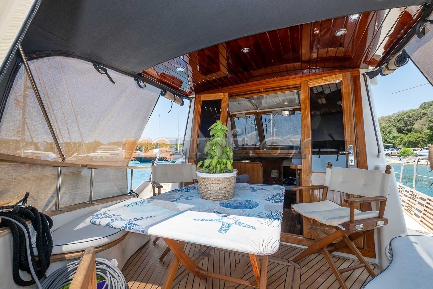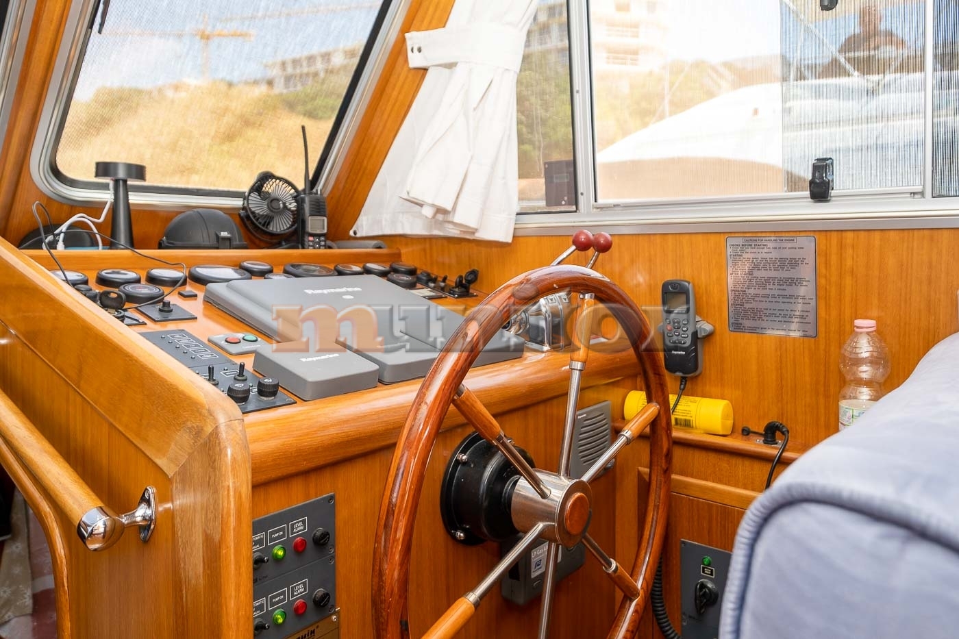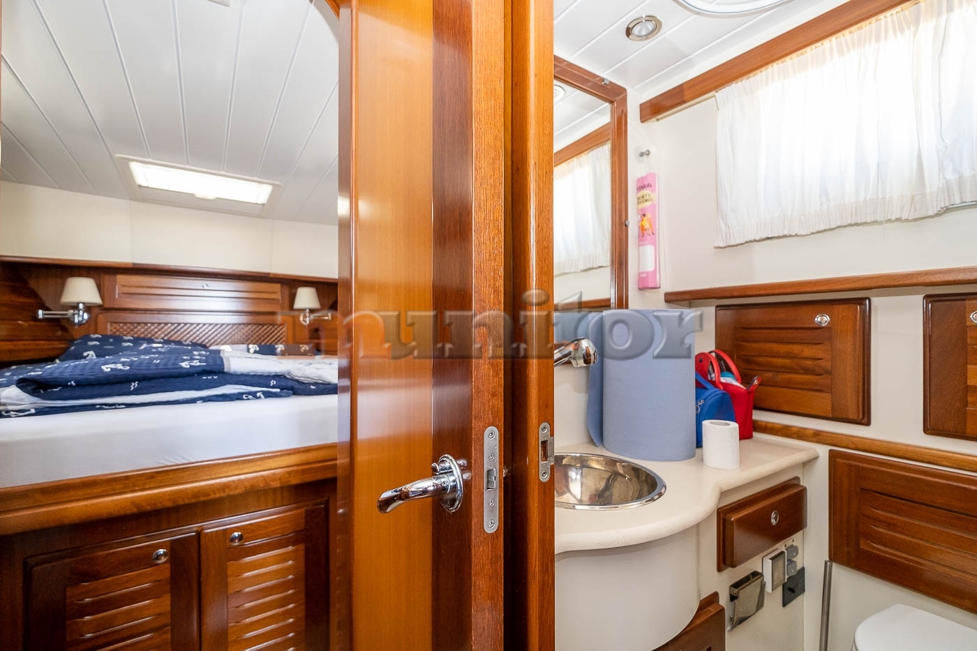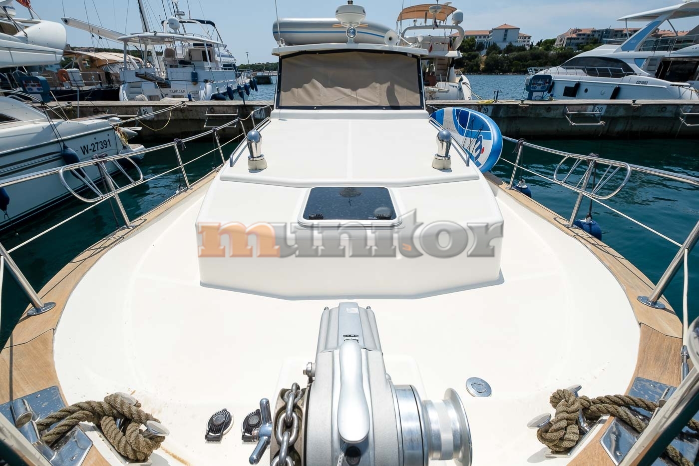 Audio System, Autopilot, Bathing platform, Battery charger, Bow thruster, Cockpit shower, Compass, Echo sounder, El. toilet, El.anchor windlass, Fenders, GPS Plotter, Hard Top, Heating, Hot water system, Hydraulic gangway, Stern teak, Swimming ladder, Teak in cockpit, Trim Tabs, VHF