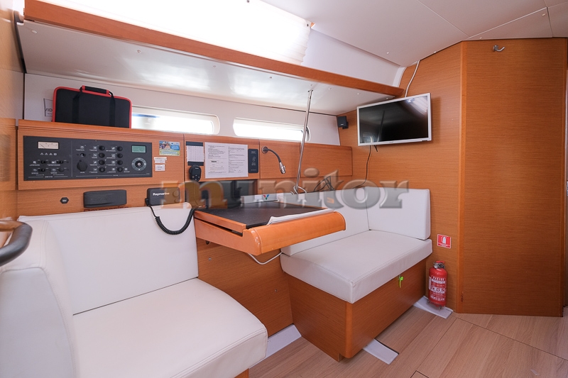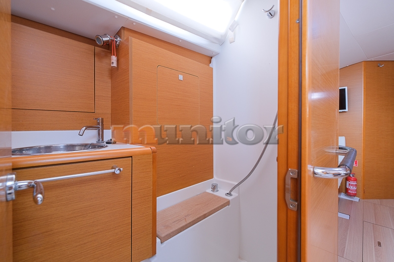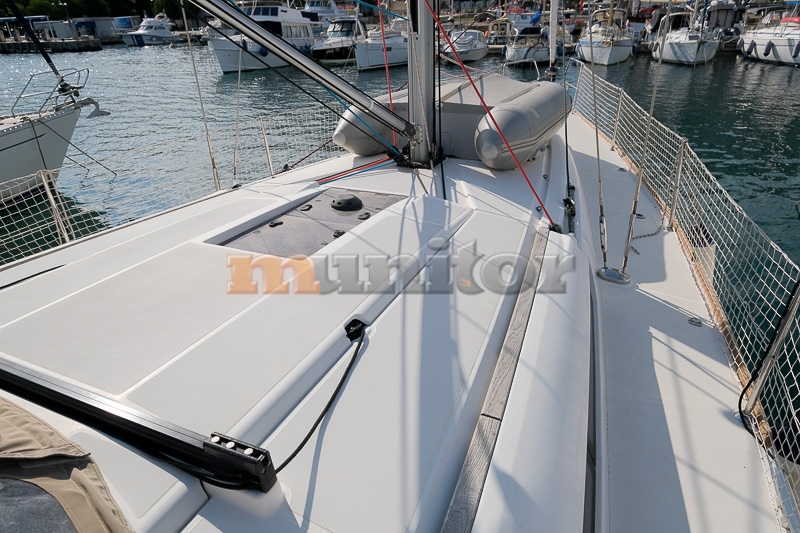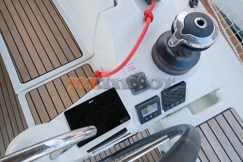 VHF, Echo sounder, Autopilot, Cockpit shower, El.anchor windlass, Hot water system, Grey water tank - x2, GPS Plotter - RAYMARINE, Wind indicator, Sprayhood, Bimini top, Battery charger, Bow thruster, LCD TV, Audio System - FUSION, Fenders, Compass, Bathing platform - FOLD-DOWN, Swimming ladder, Sofas in leather, Refrigerator, Stove, Teak in cockpit, Stern teak, Oven