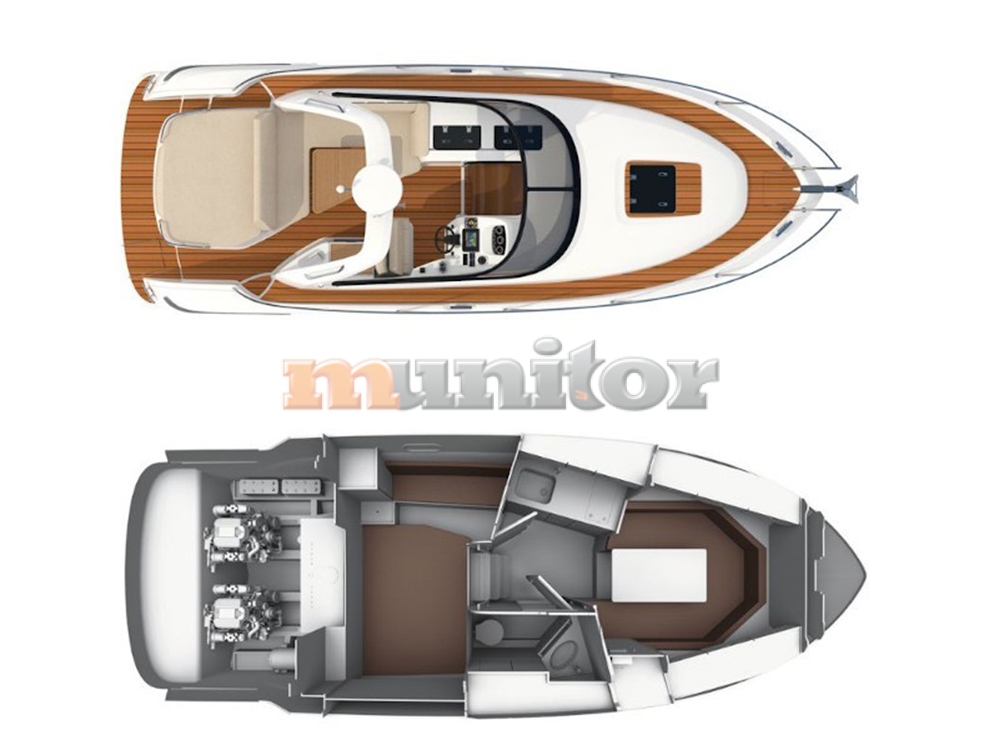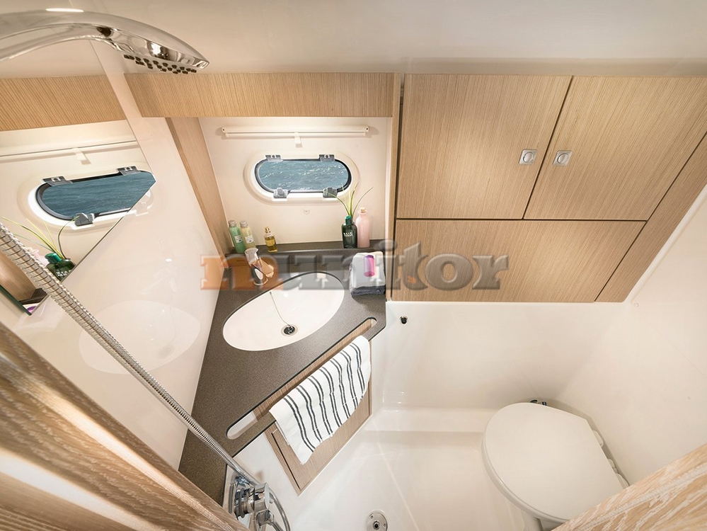 VHF, Echo sounder, Cockpit shower, El.anchor windlass, Hot water system, GPS Plotter - GARMIN, Battery charger, Deck cushions, Bow thruster, Audio System, Fenders, Bathing platform, Swimming ladder, El. throttle control, Service battery, Engine battery, Teak in cockpit, Stern teak