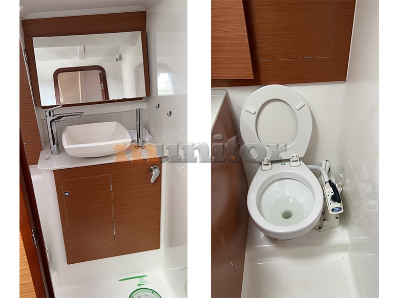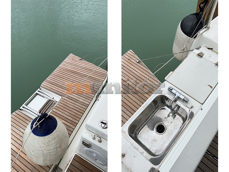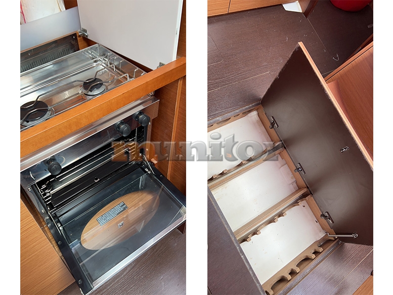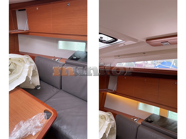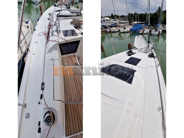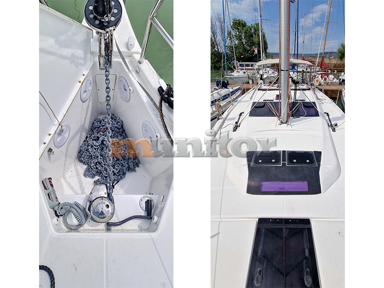 Audio System, Autopilot, Bathing platform, Battery charger, BBQ, Bimini top, Bow thruster, Cockpit shower, Compass, Echo sounder, El.anchor windlass, Fenders, GPS Plotter, Hot water system, LCD TV, Oven, Refrigerator, Sofas in leather, Sprayhood, Stern teak, Stove, Teak in cockpit, VHF, Wind indicator