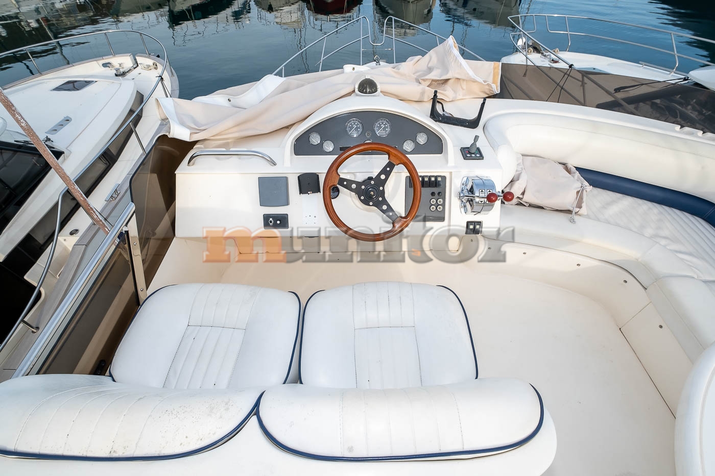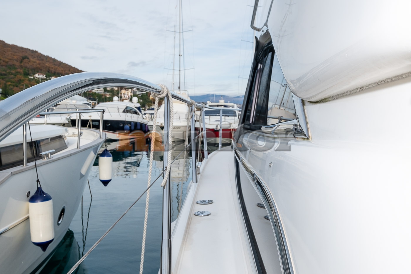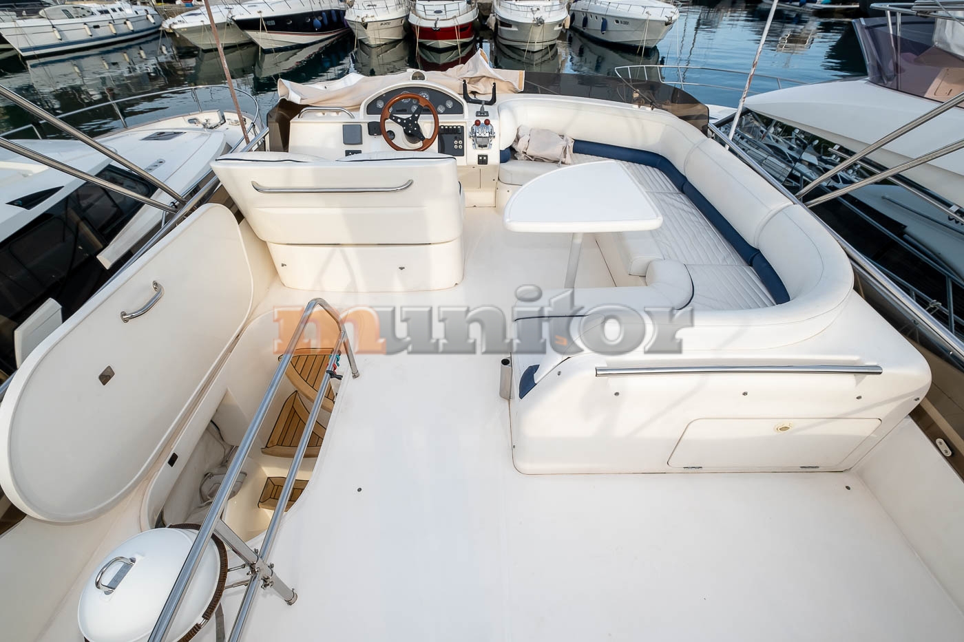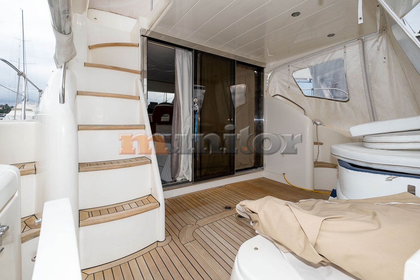 Bathing platform, Battery charger, Bow thruster, Cockpit shower, Deck cushions, Dinghy, Echo sounder, El.anchor windlass, Engine battery, Fenders, FLYBRIDGE Bimini, Generator, GPS Plotter, Grey water tank, Hot water system, Hydraulic gangway, Microwave, Outboard motor, Service battery, Stern teak, Swimming ladder, Teak in cockpit
