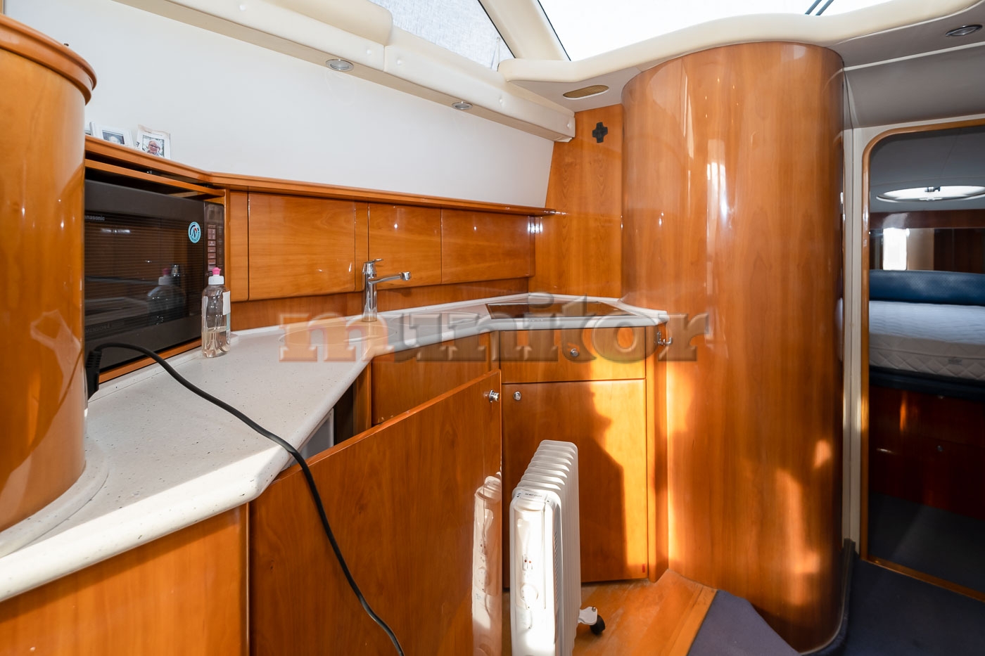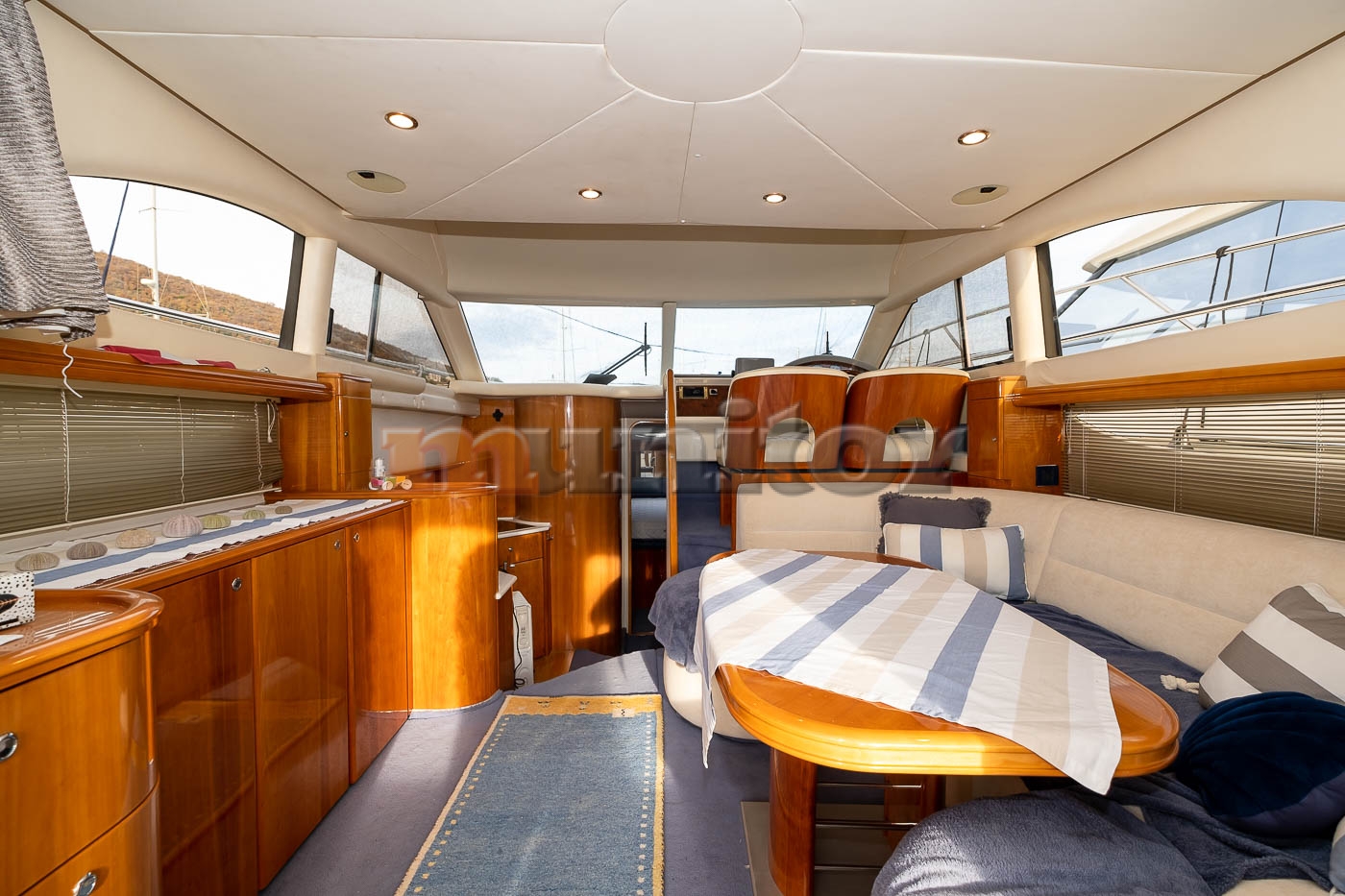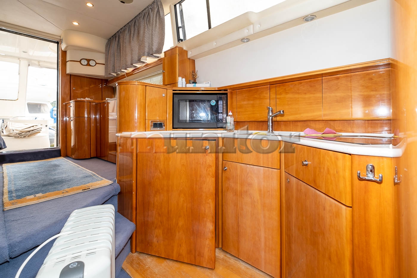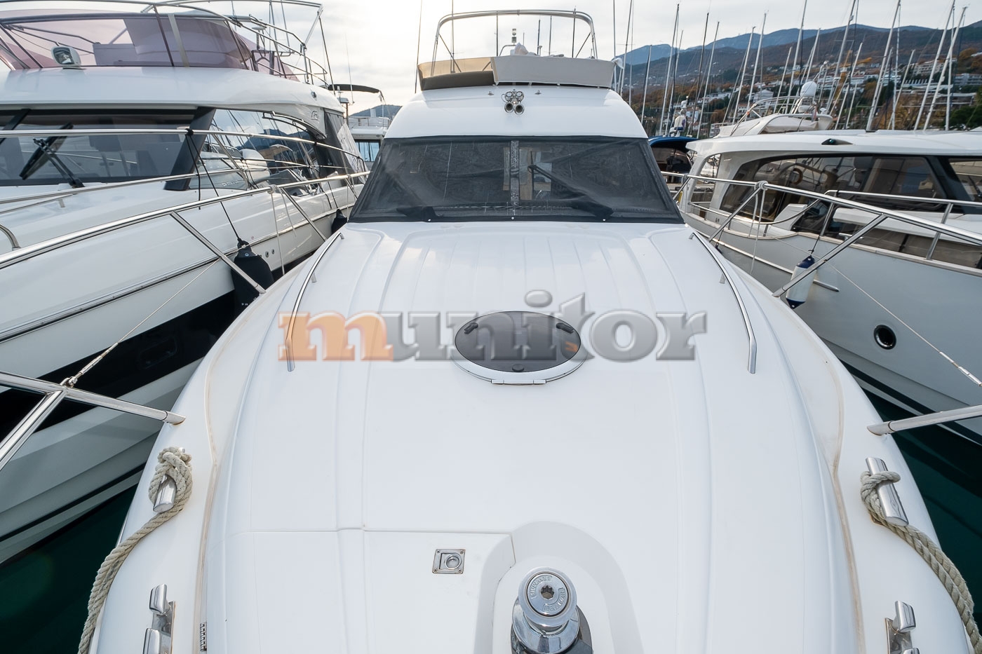 Bathing platform, Battery charger, Bow thruster, Cockpit shower, Deck cushions, Dinghy, Echo sounder, El.anchor windlass, Engine battery, Fenders, FLYBRIDGE Bimini, Generator, GPS Plotter, Grey water tank, Hot water system, Hydraulic gangway, Microwave, Outboard motor, Service battery, Stern teak, Swimming ladder, Teak in cockpit