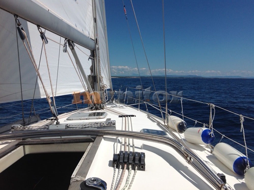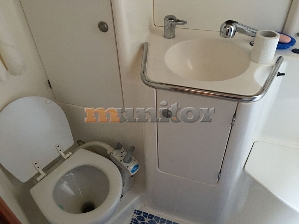 VHF, Echo sounder, GPS Plotter, Wind indicator, Sprayhood, Bimini top, Battery charger, Fenders, Compass, Bathing platform, Swimming ladder, Service battery, Engine battery, El.anchor windlass