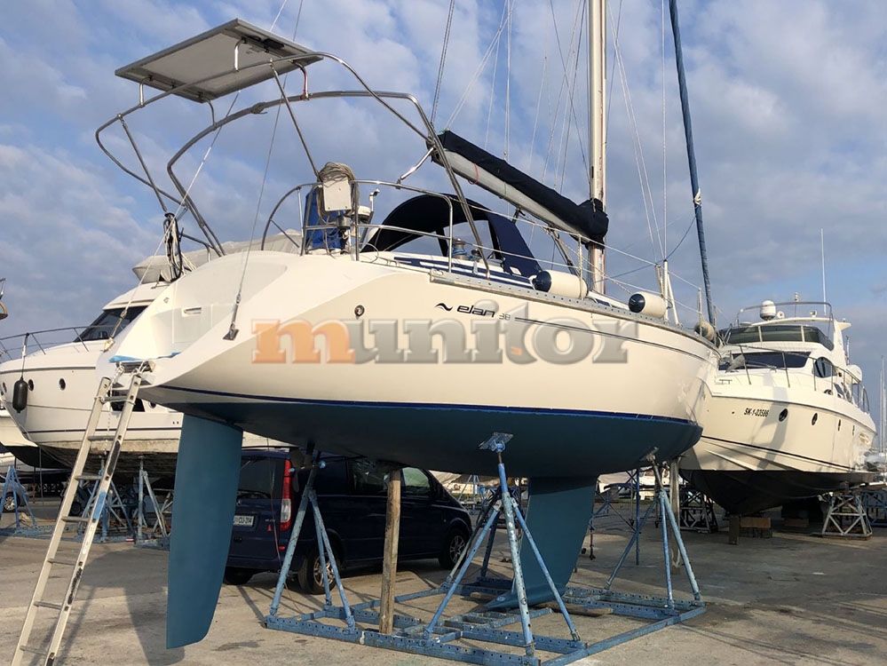 VHF, Echo sounder, Heating, Autopilot, Cockpit shower, El.anchor windlass, Hot water system, GPS Plotter, Wind indicator, Sprayhood, Bimini top, Battery charger, Fenders, Compass, Bathing platform, Swimming ladder, Solar cells, Service battery, Engine battery, Teak in cockpit, Stern teak