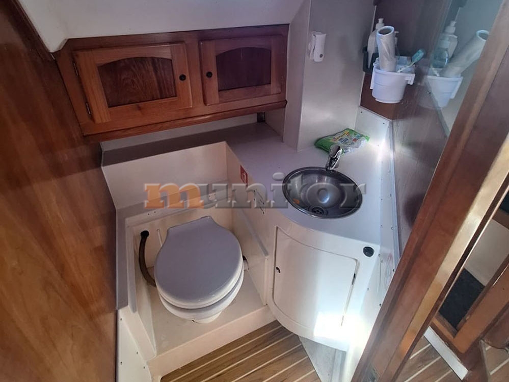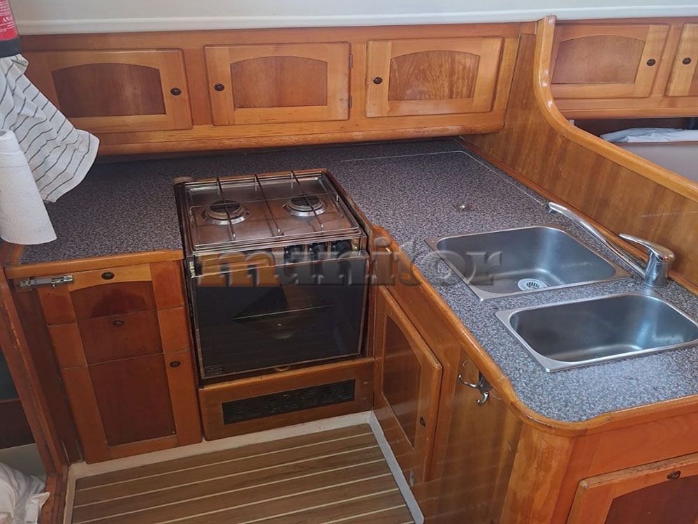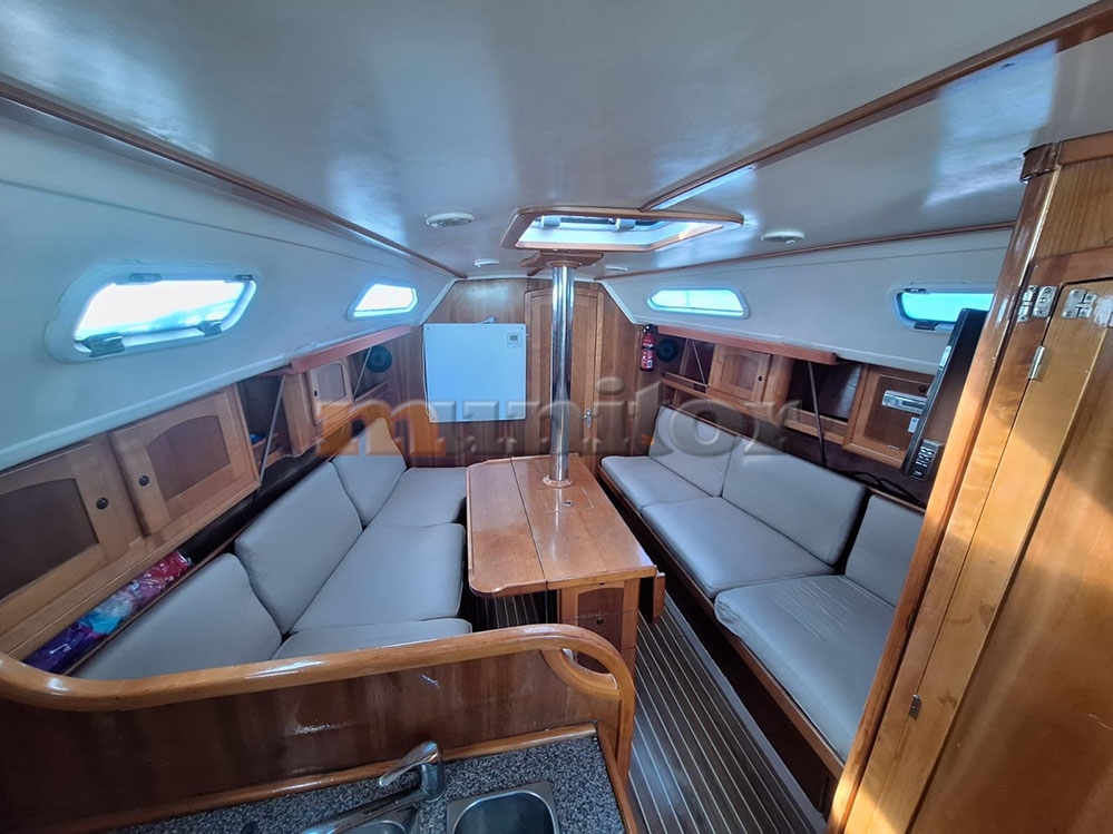 VHF, Echo sounder, Heating, Autopilot, Cockpit shower, El.anchor windlass, Hot water system, Grey water tank - 50 lit., GPS Plotter, Wind indicator, Sprayhood, Bimini top, Battery charger, LCD TV, Fenders, Compass, Bathing platform, Swimming ladder, El. toilet, Solar cells, Service battery, Engine battery, Teak in cockpit, Stern teak