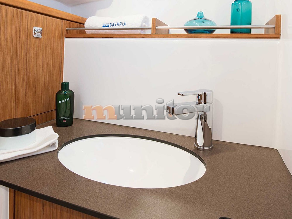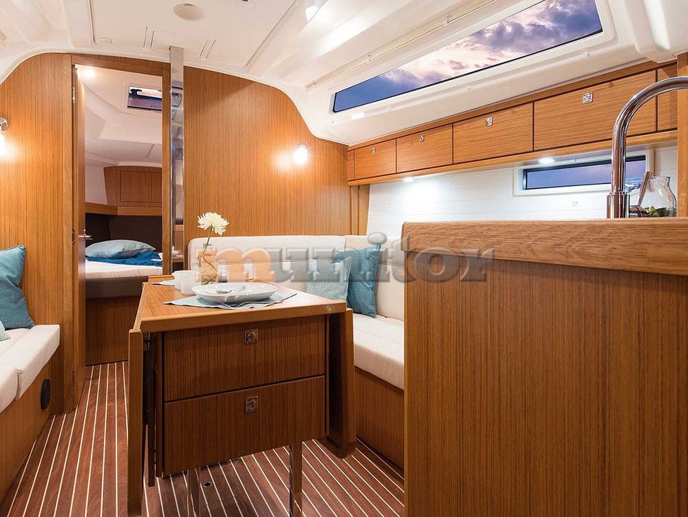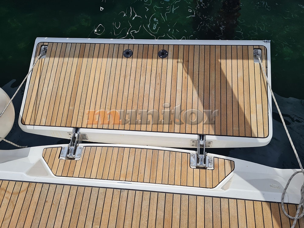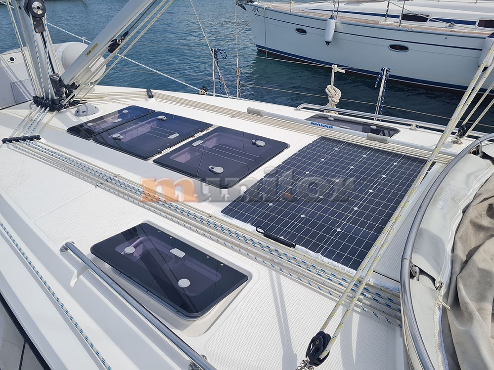 VHF, Echo sounder, Heating, Autopilot, Cockpit shower, El.anchor windlass, Hot water system, Grey water tank, GPS Plotter - GARMIN, Wind indicator, Sprayhood, Bimini top, Battery charger, Bow thruster, Audio System, Fenders, Compass, Bathing platform, Swimming ladder, El. toilet, Solar cells - 120 W, Service battery, Engine battery, Teak in cockpit, Stern teak