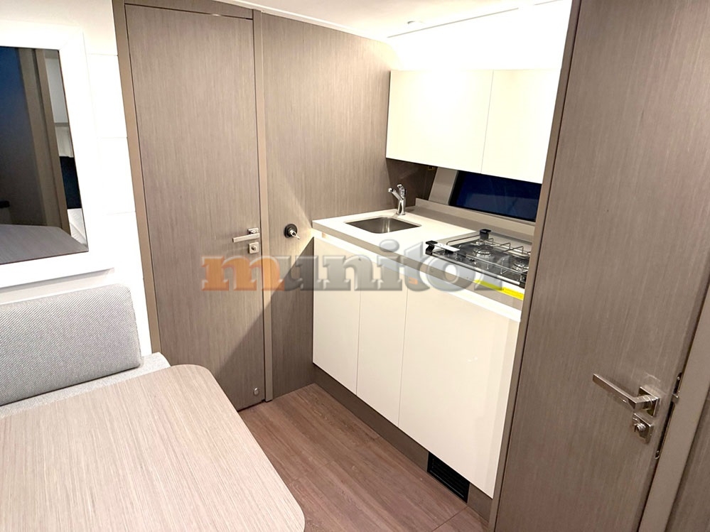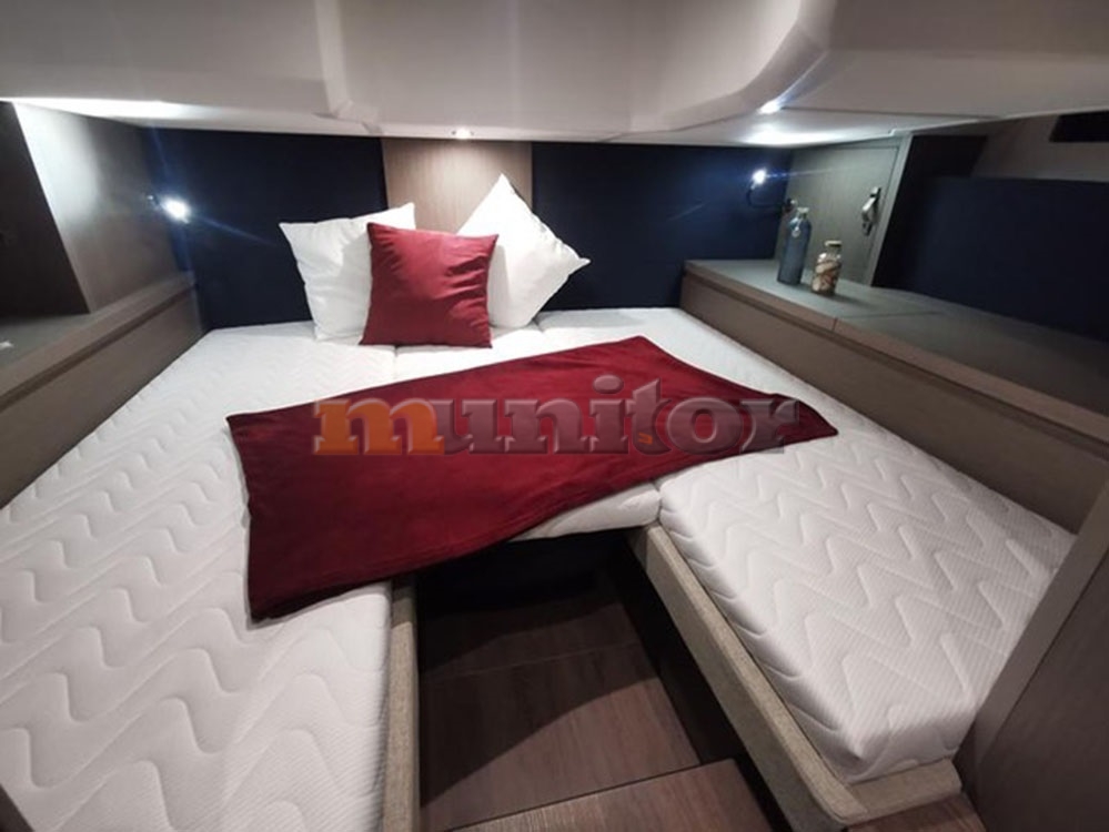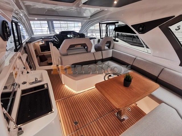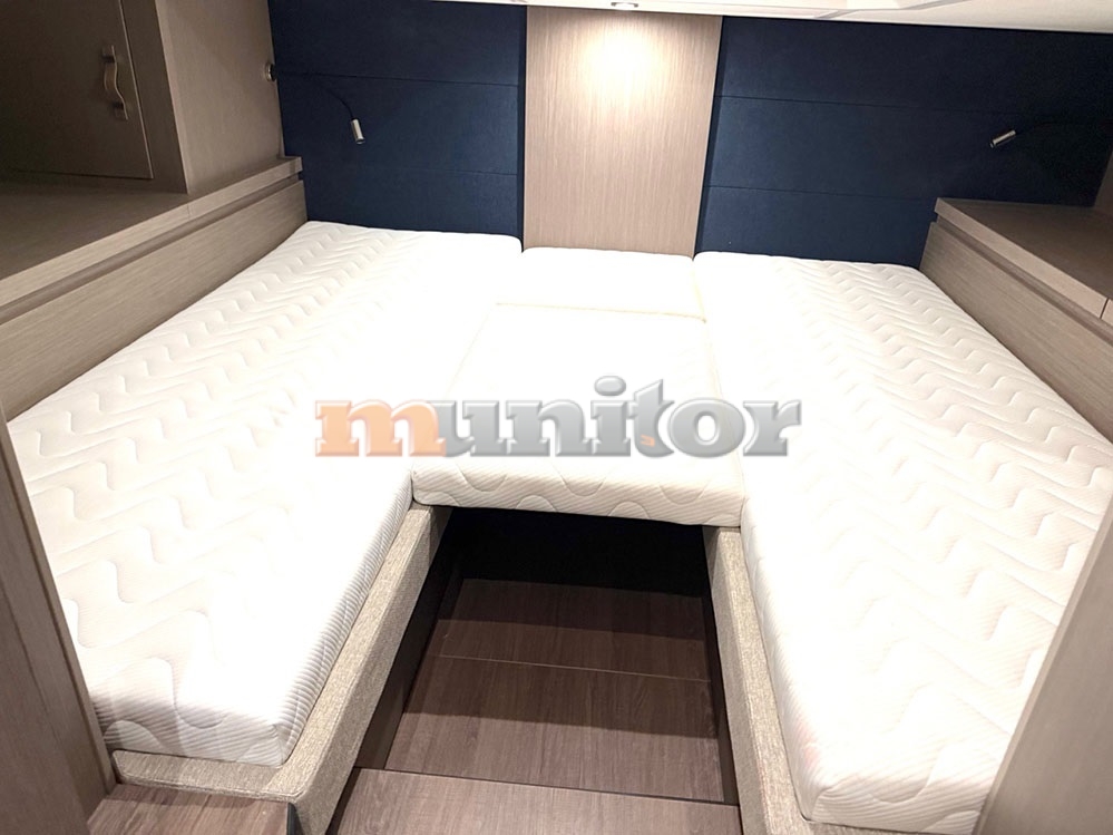 VHF, Echo sounder, Air condition, Heating, Autopilot, Cockpit shower, El.anchor windlass, Hot water system, Grey water tank, GPS Plotter, Battery charger, Deck cushions, Hydraulic gangway, Bow thruster, Audio System, Fenders, Microwave, Swimming ladder, Generator, El. throttle control, Hard Top, Hydraulic bathing platform, Joystick control, El. toilet, Service battery, Engine battery, Teak in cockpit, Stern teak