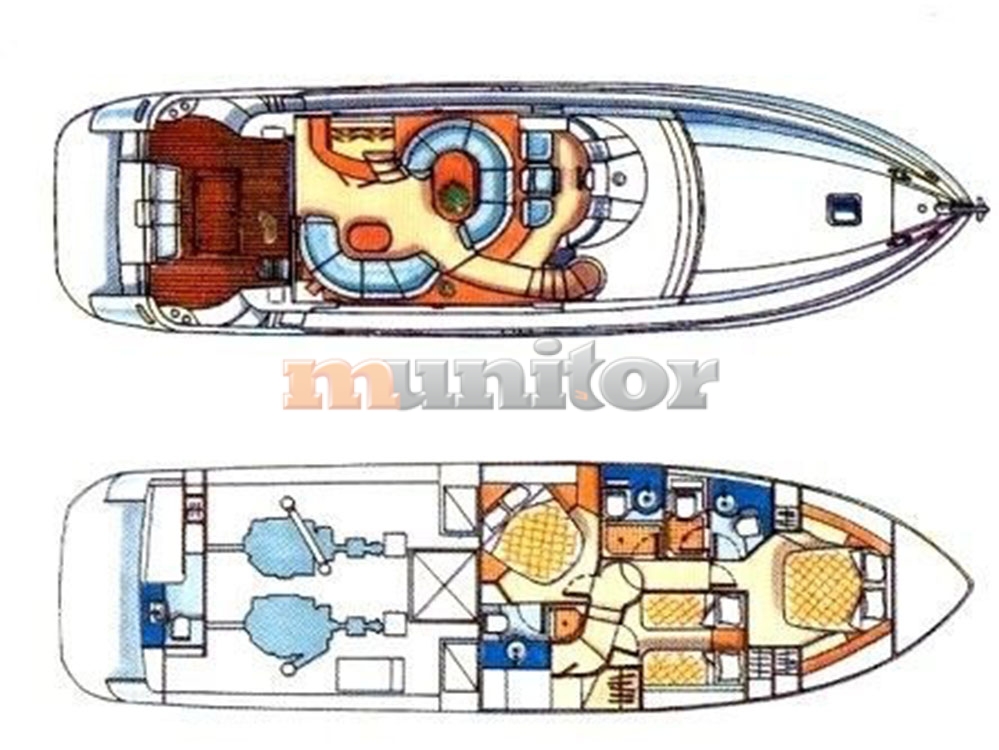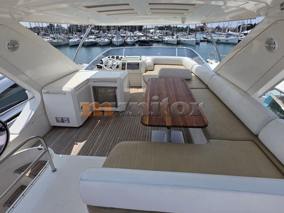 VHF, Echo sounder, Air condition, Heating, Autopilot, Radar, Cockpit shower, El.anchor windlass, Hot water system, Grey water tank, Battery charger, FLYBRIDGE Bimini, Deck cushions, Hydraulic gangway, Bow thruster, Stern thruster, LCD TV, SAT anten, Audio System, Fenders, Ice Maker, Compass, Swimming ladder, Water maker, Generator, El. throttle control, Hard Top, Hydraulic bathing platform, El. toilet, Washer & Dryer, Service battery, Engine battery, Teak in cockpit, Stern teak
