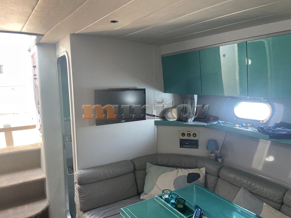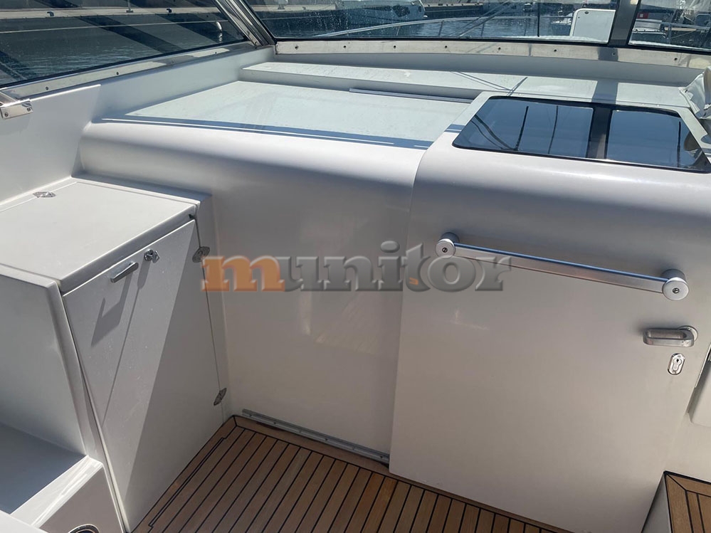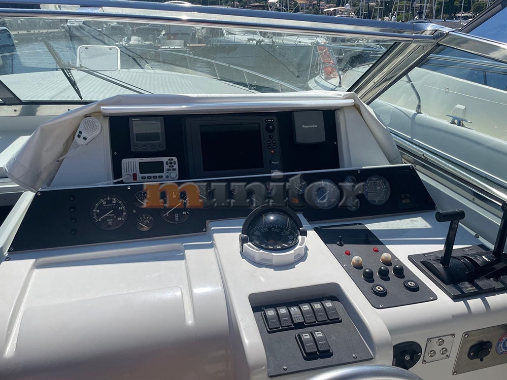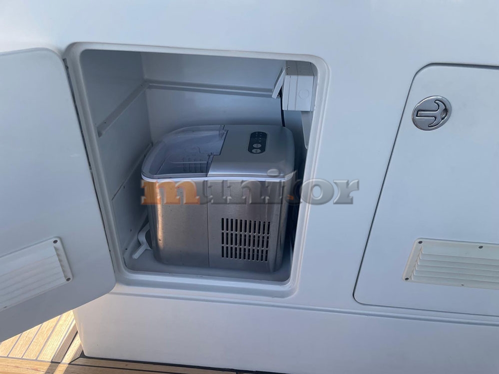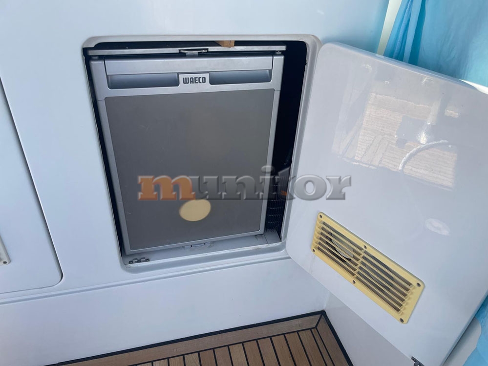 VHF, Echo sounder, Air condition, Heating, Cockpit shower, El.anchor windlass, Hot water system, GPS Plotter, Bimini top, Battery charger, Deck cushions, Hydraulic gangway, Bow thruster, LCD TV, SAT anten, Audio System, Fenders, Microwave, Bathing platform, Swimming ladder, Sofas in leather, Generator - MASE, Engine battery, Service battery, Teak in cockpit, Stern teak