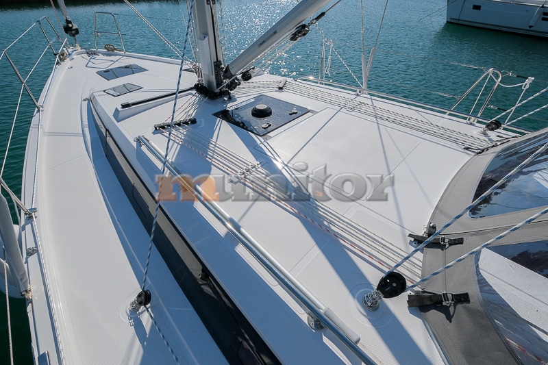 Radio stanica - B&G V60, Dubinomjer, Grijanje, Autopilot - B&G, Krmeni tuš, El.sidro, Topla voda, Tank za fekalije, GPS Ploter - B&G Zeus3, Pokazivač vjetra - B&G, Sprayhood, Bimini top, Punjač baterija, Prednji pramčani propeler, Audio System, Bokobrani, Kompas, Platforma za kupanje - Fold-Down, Ljestve za kupanje, Inverter, Sunčane ćelije, Hladnjak, Tikovina u kokpitu