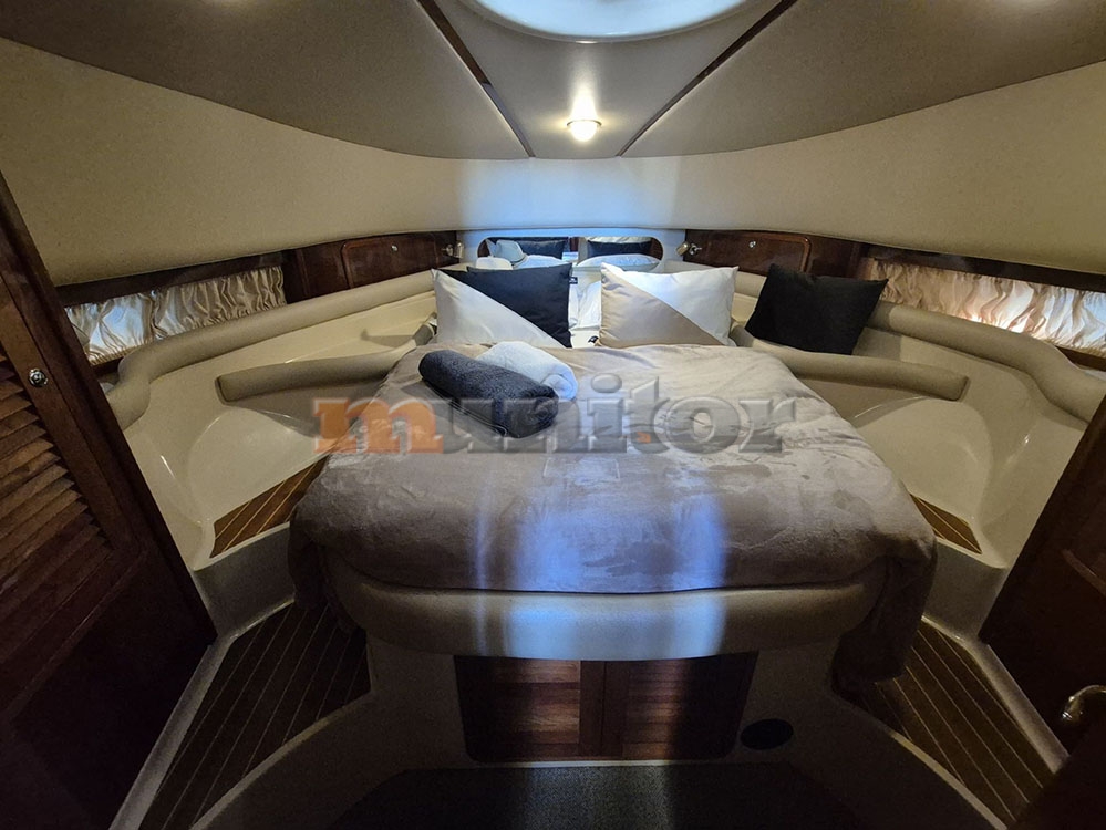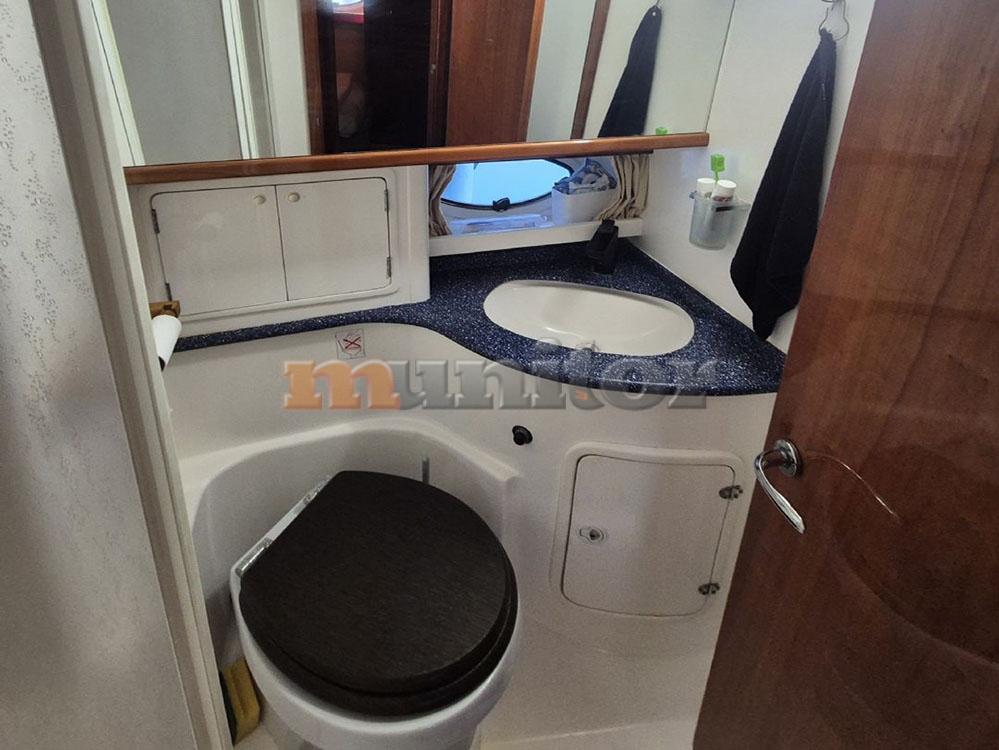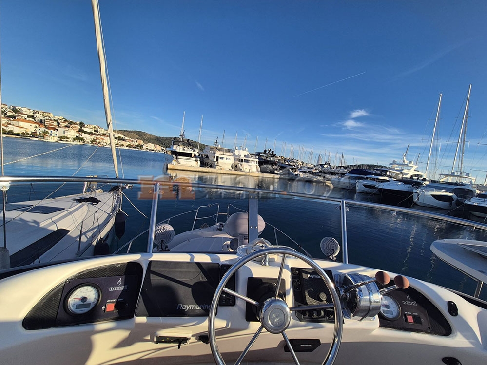 Radio stanica, Dubinomjer, Autopilot, Krmeni tuš, El.sidro, Topla voda, GPS Ploter, Punjač baterija, Jastuci za sunčanje, Audio System, Bokobrani, Platforma za kupanje, Ljestve za kupanje, Servisna baterija, Motorna baterija, Klima uređaj, Grijanje, FLYBRIDGE Bimini, Hidraulična pasarela, Prednji pramčani propeler, Generator, Fishfinder, El. toalet, Tikovina u kokpitu, Tikovina na krmi, Radar, Kompas, Kožna sjedeća garnitura