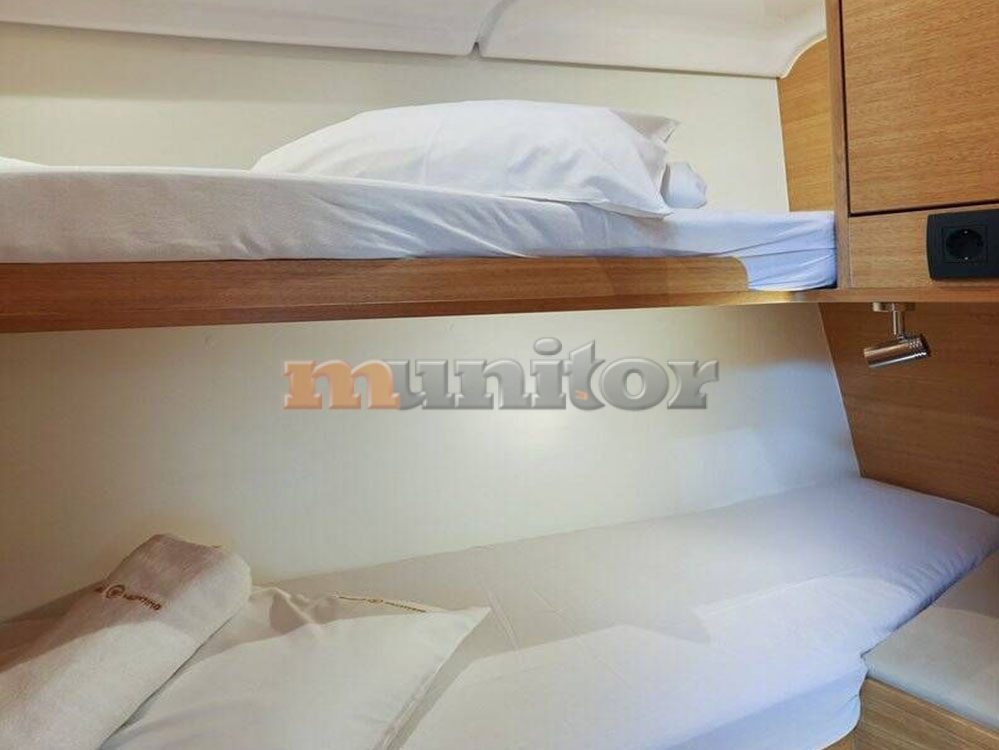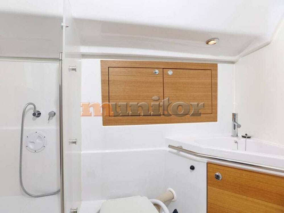 Radio stanica, Dubinomjer, Klima uređaj, Grijanje - WEBASTO, Autopilot, Krmeni tuš, El.sidro, Topla voda, Tank za fekalije - 60 lit., GPS Ploter, Pokazivač vjetra, Sprayhood, Bimini top, Punjač baterija, Prednji pramčani propeler, Audio System, Bokobrani, Kompas, Platforma za kupanje, Ljestve za kupanje, Servisna baterija, Motorna baterija, Tikovina u kokpitu, Tikovina na krmi