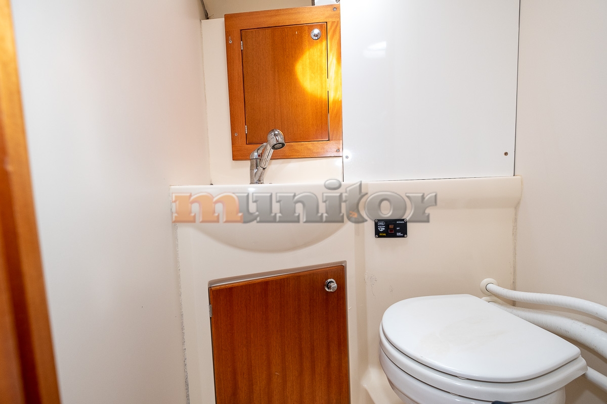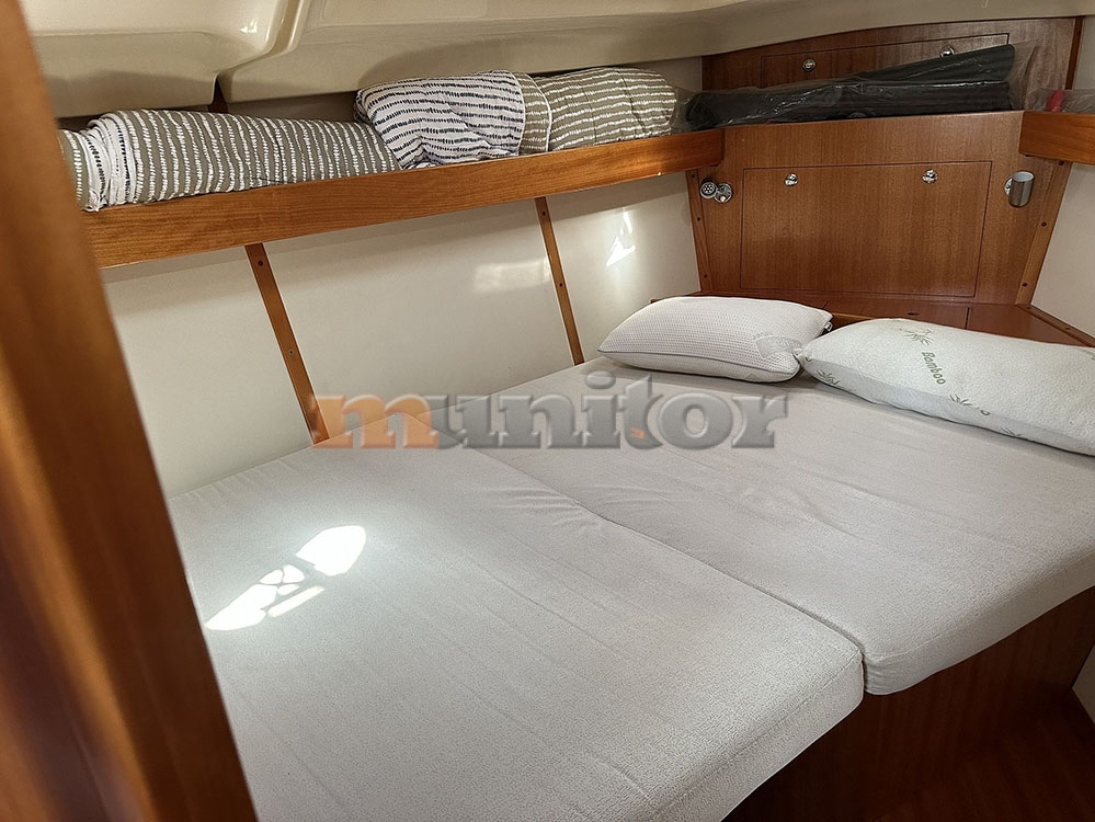 Radio stanica, Dubinomjer, Grijanje, Klima uređaj, Autopilot, Topla voda, GPS Ploter - RAYMARINE, Pokazivač vjetra, Sprayhood, Bimini top, Punjač baterija, Prednji pramčani propeler, Kompas, Platforma za kupanje, Ljestve za kupanje, Servisna baterija, Motorna baterija, Tikovina u kokpitu, Tikovina na krmi, LCD TV
