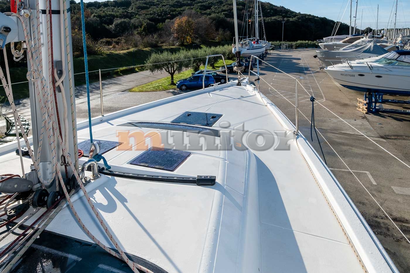 Radio stanica, Dubinomjer, Grijanje, Autopilot, Krmeni tuš, El.sidro, Topla voda, Tank za fekalije, GPS Ploter, Pokazivač vjetra, Sprayhood, Bimini top, Punjač baterija, Prednji pramčani propeler, Kompas, Platforma za kupanje, Ljestve za kupanje, Sunčane ćelije, Servisna baterija, Motorna baterija, Tikovina u kokpitu, Tikovina na krmi