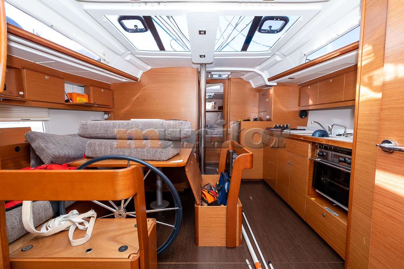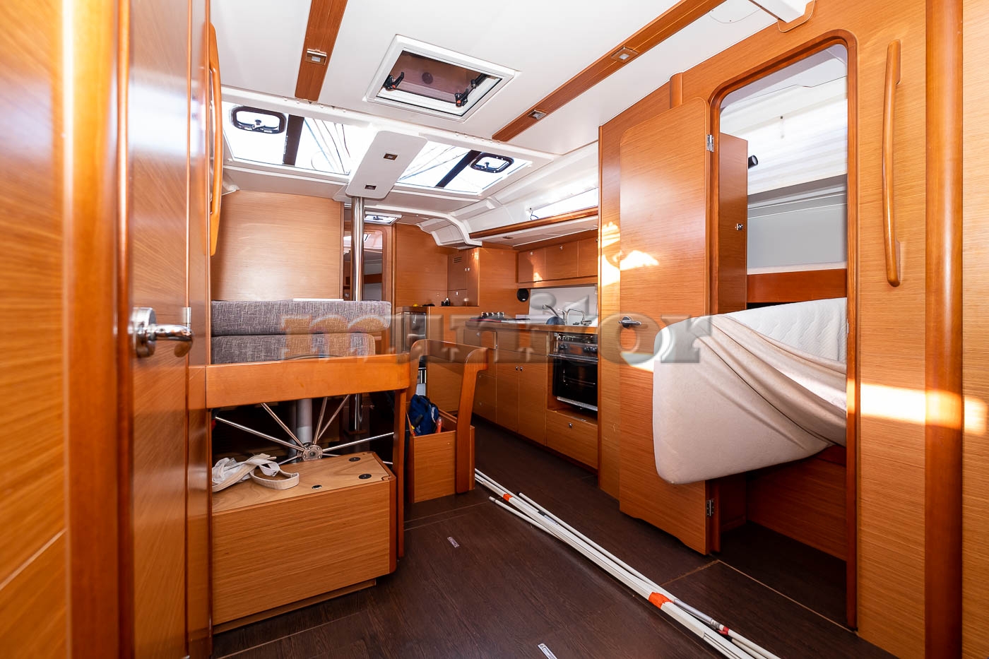 Salon, Kuhinja, Prednja kabina, Bočna kabina, 2x zadnja kabina, 2x kupatilo, 2x toalet, Kokpit